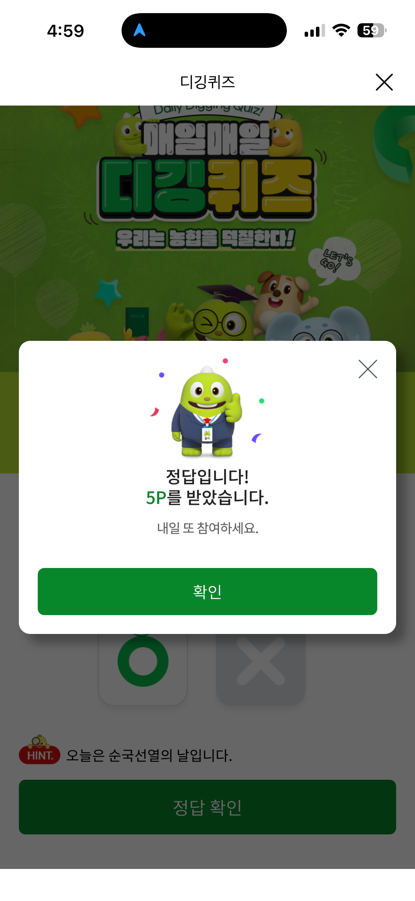 NH올원뱅크 디깅퀴즈 정답은 O 입니다