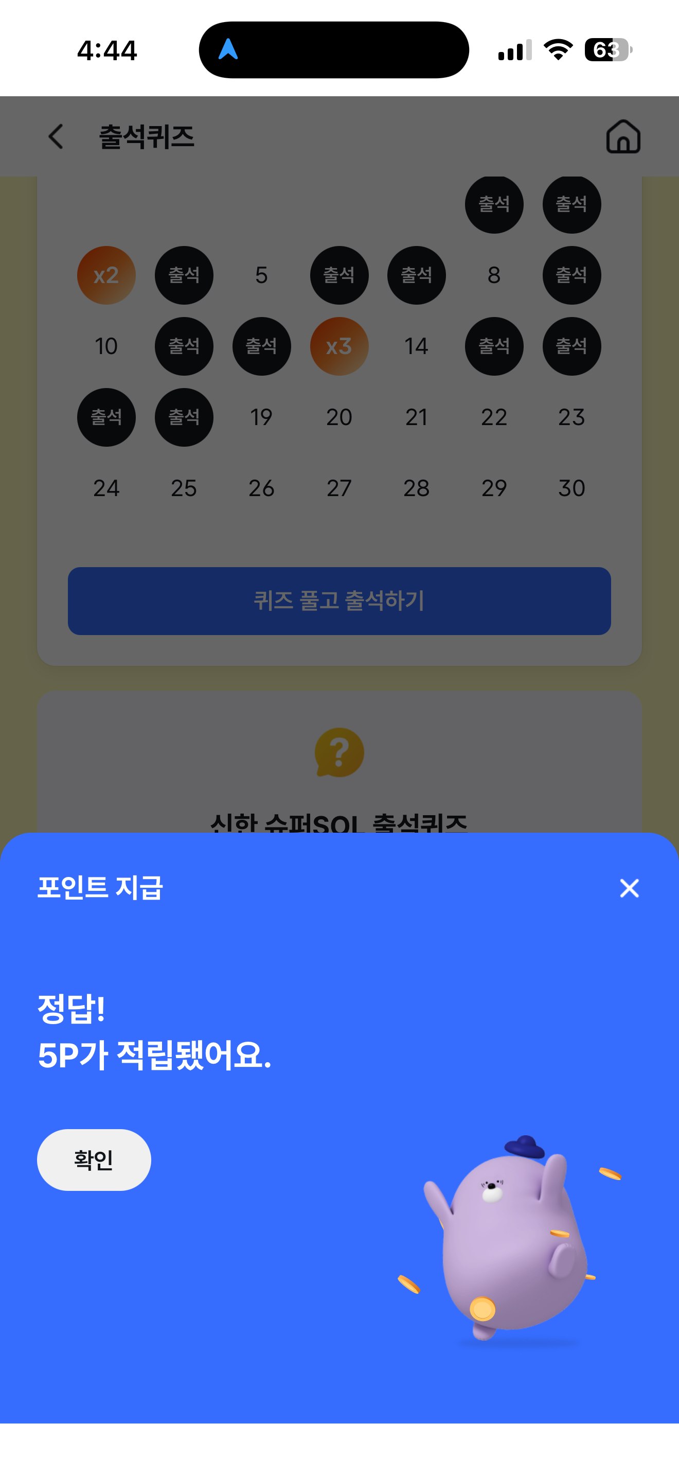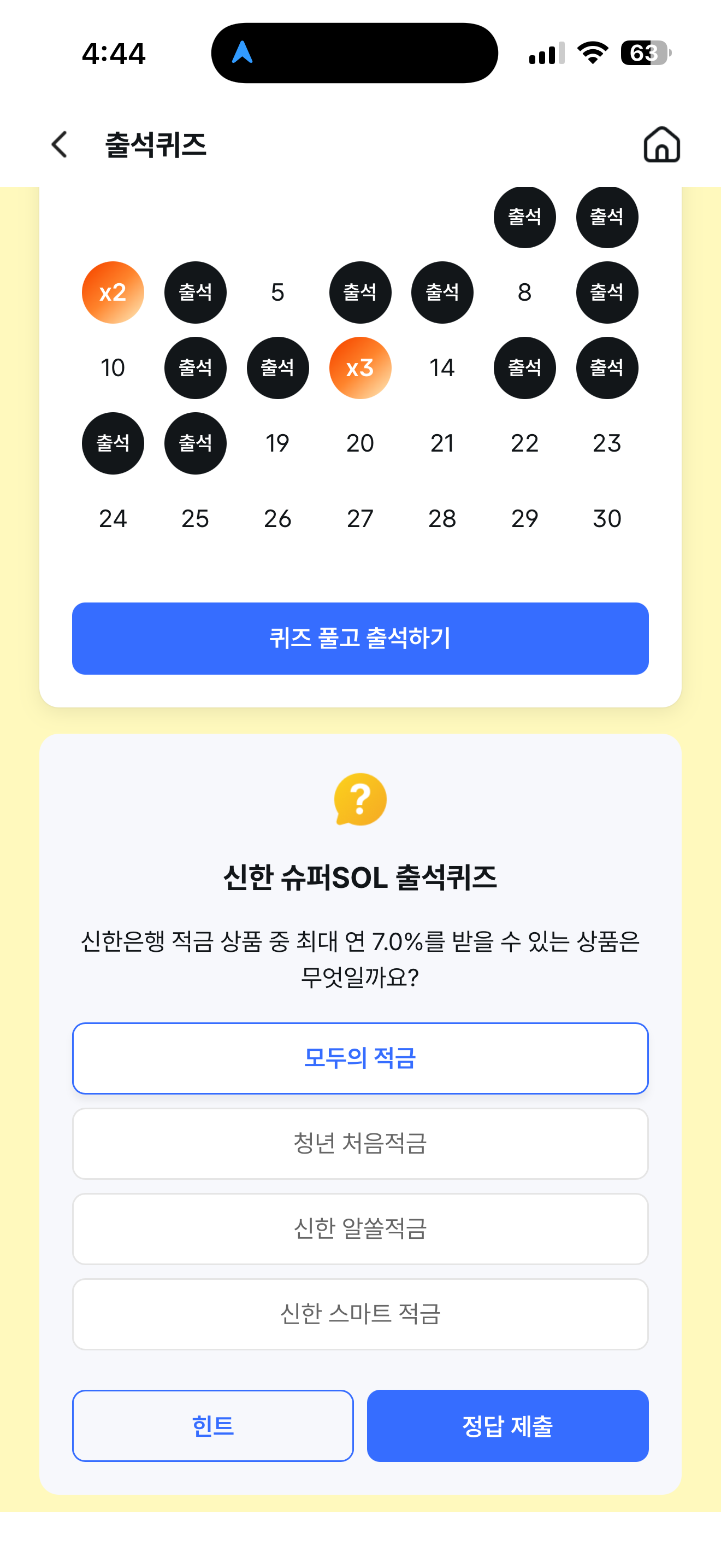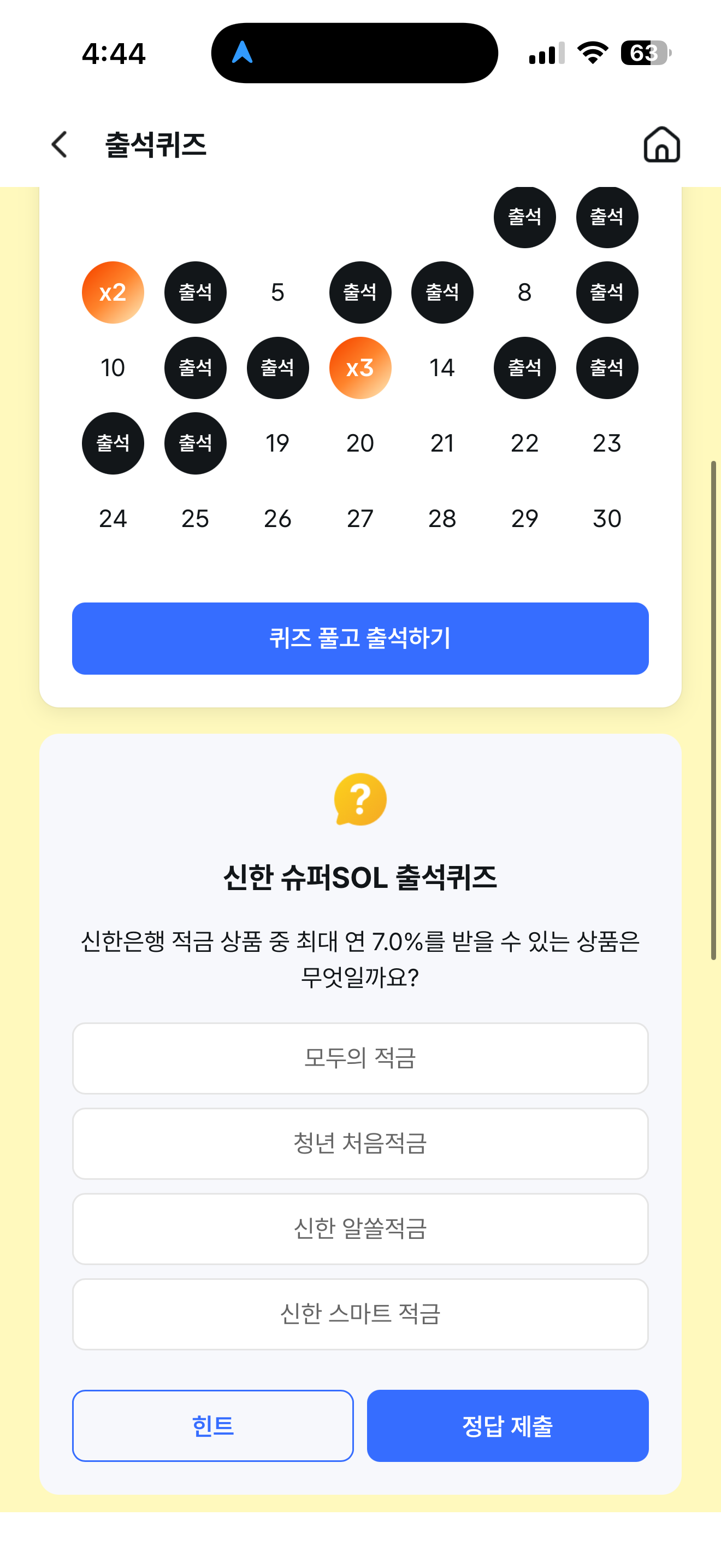 신한 슈퍼SOL 출석퀴즈 정답은 모두의 작금 입니다