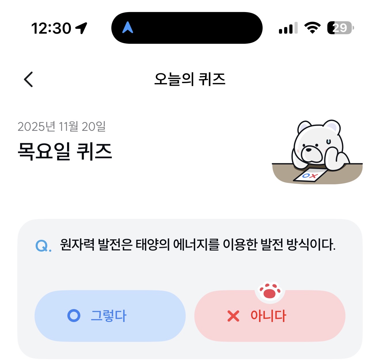 기후행동 기회소득 오늘의 퀴즈 정답은 아니다 입니다