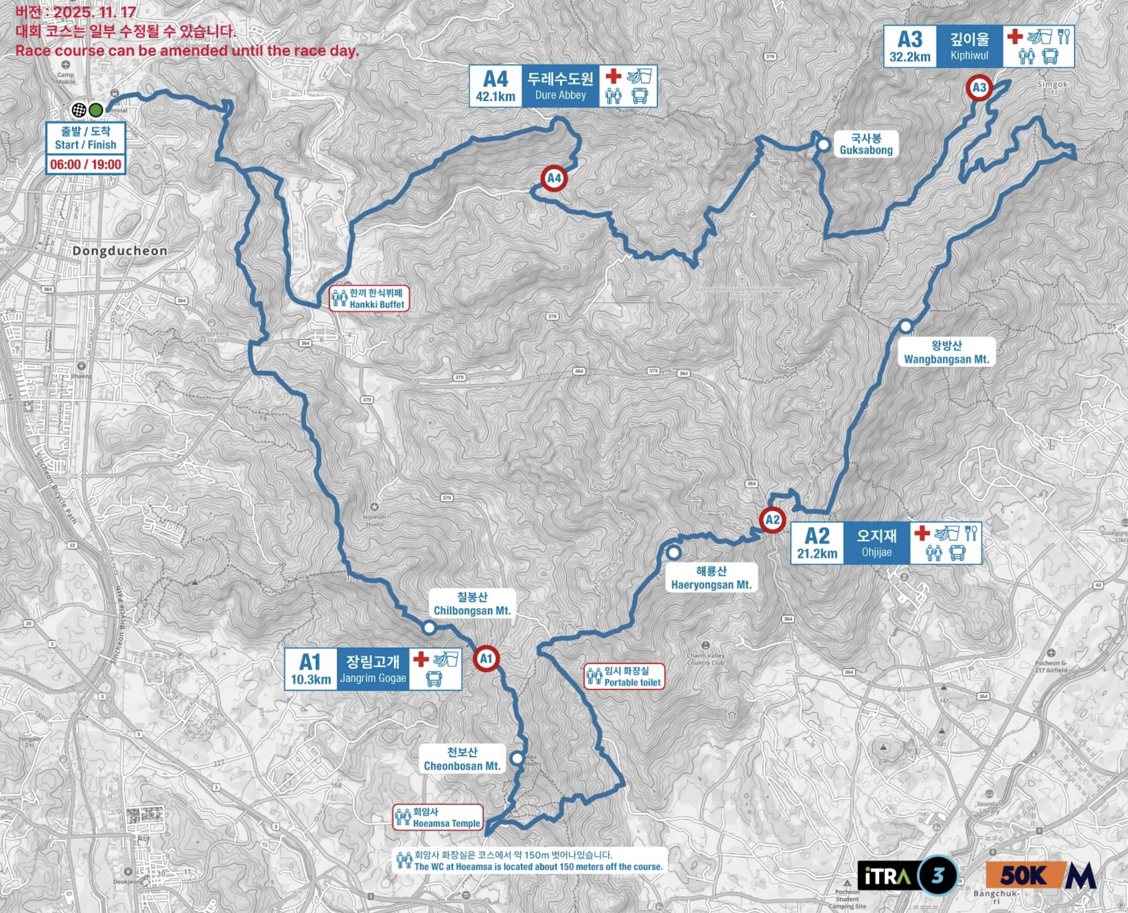 트레일러닝 대회는 장비 체크가 필수이기 때문에, 전날 동두천에서 미리 점검받고 여유 있게 대회장 가는 것을 강력히 추천드립니다.