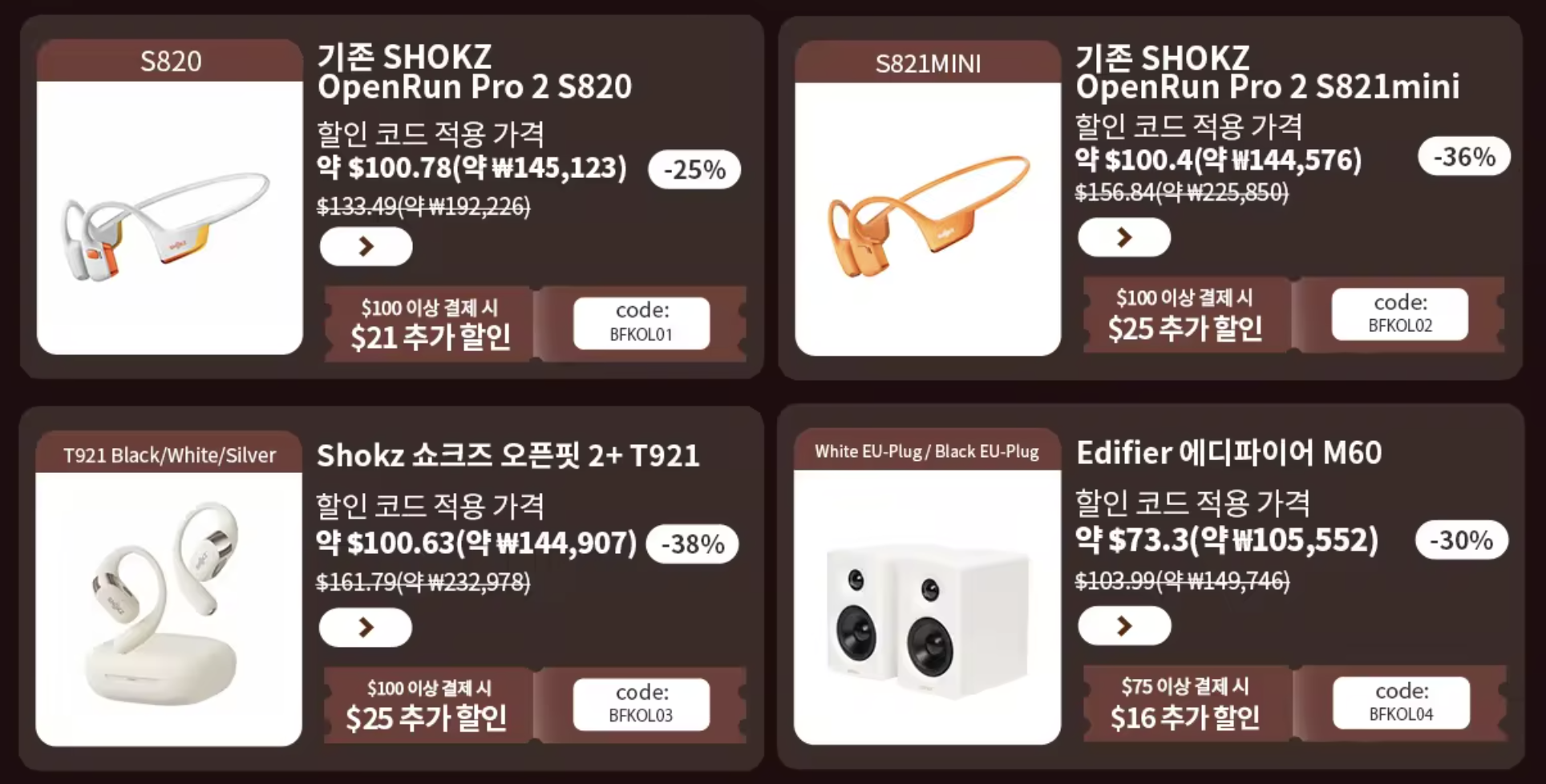 11월 22일 기준, 알리에서는 블랙프라이데이 행사로 샥즈 라인업이 꽤 큰 폭으로 내려가 있습니다.