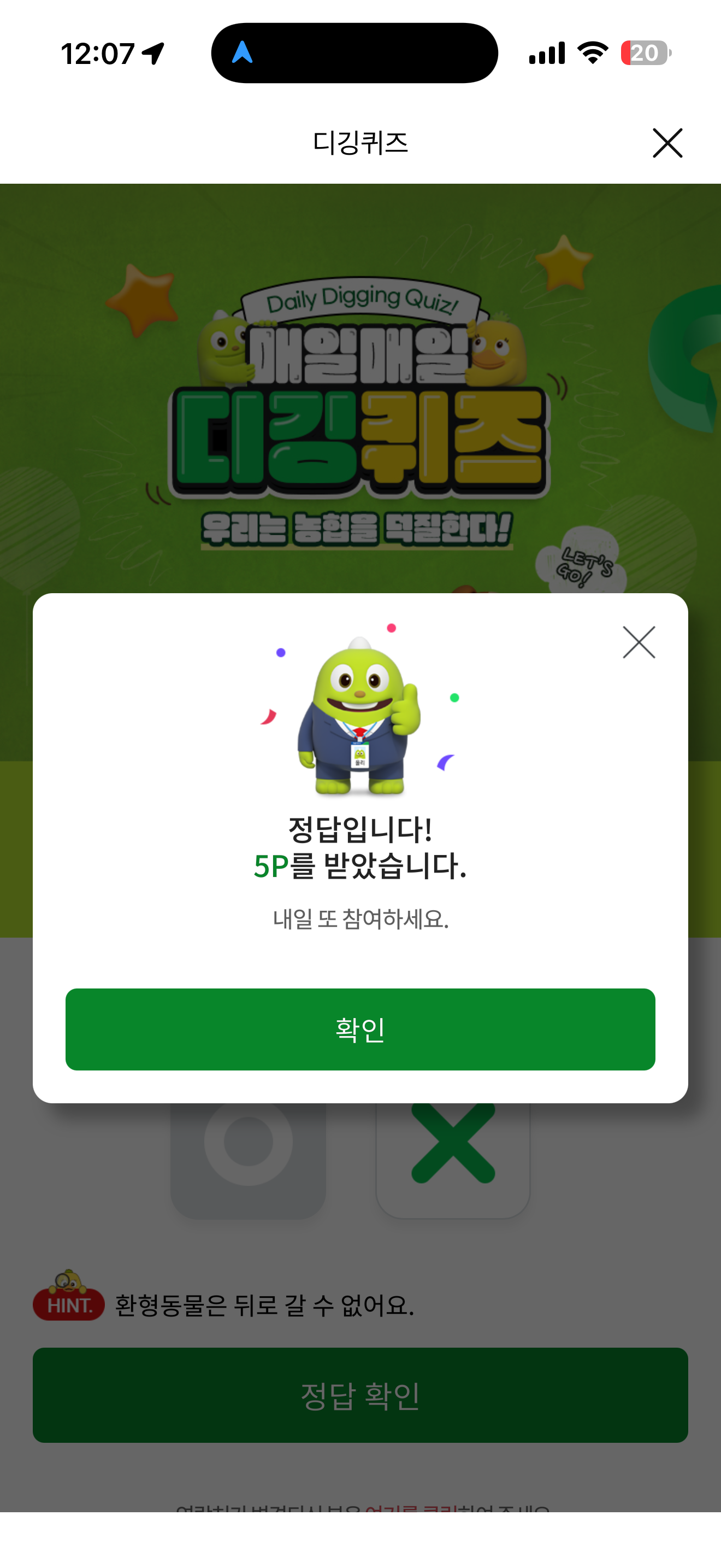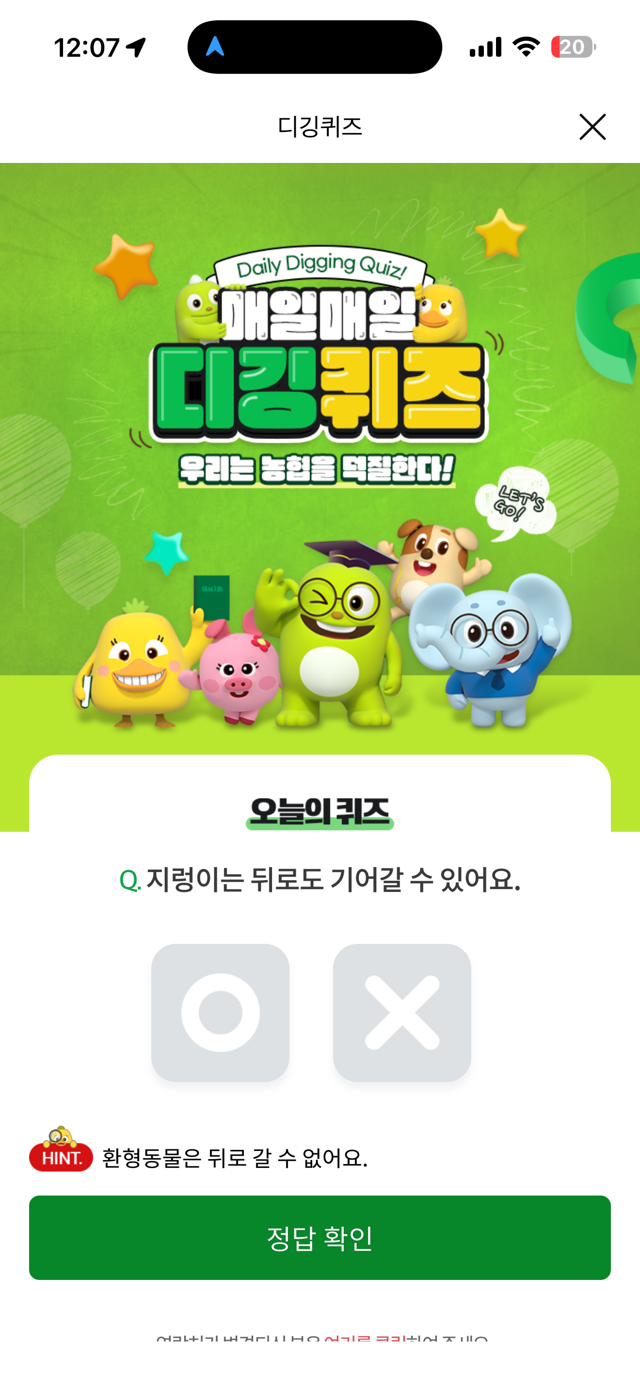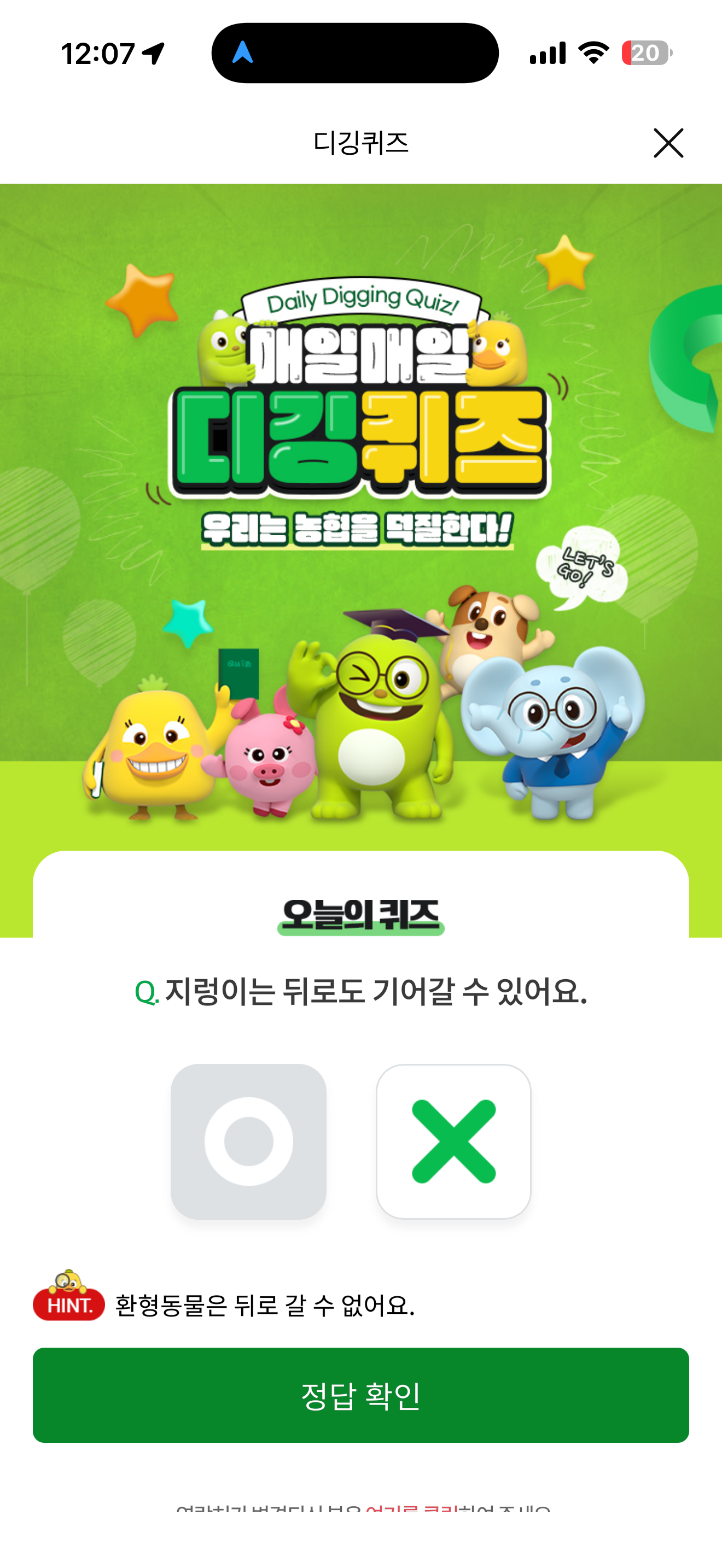 NH올원뱅크 디깅퀴즈 정답은 X 입니다
