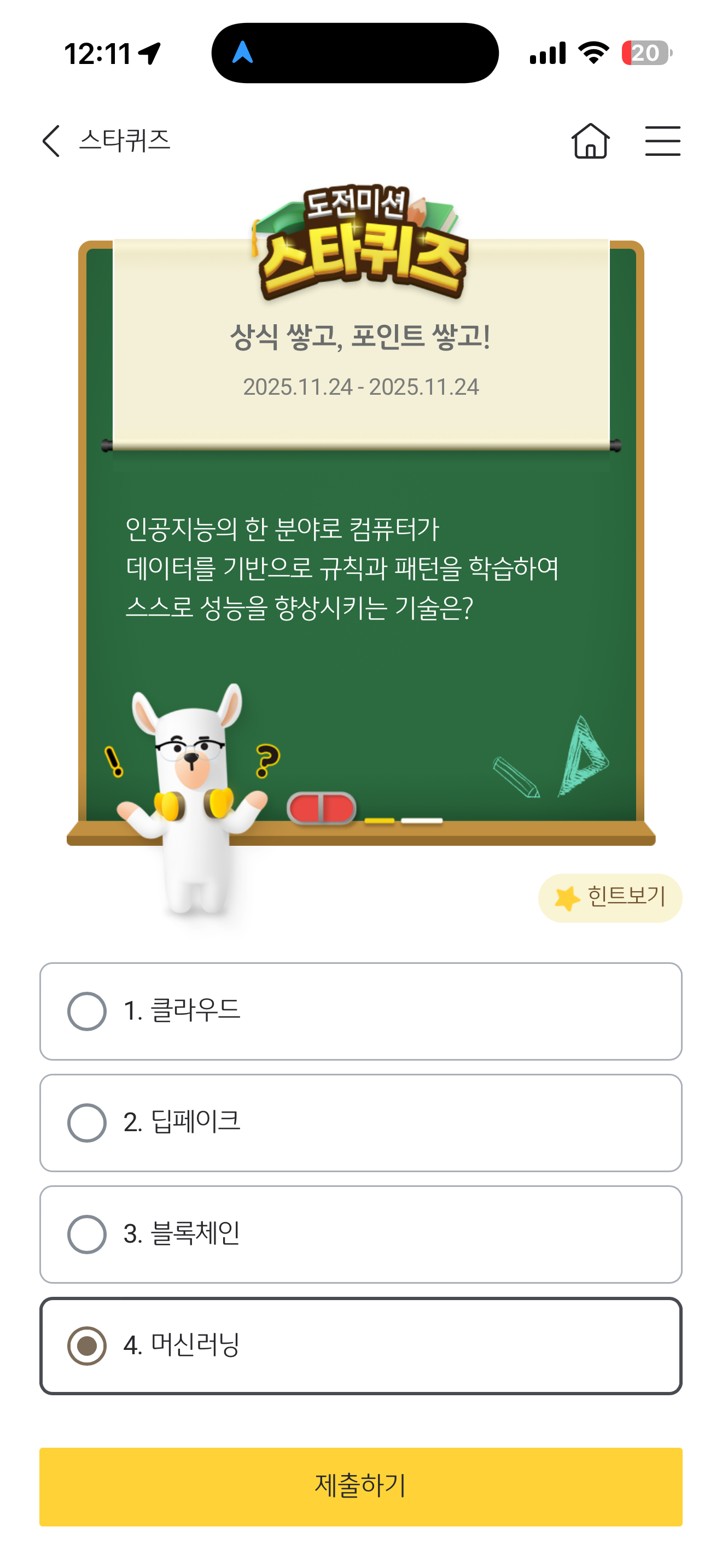 KB스타뱅킹 스타퀴즈 정답은 머신러닝 입니다