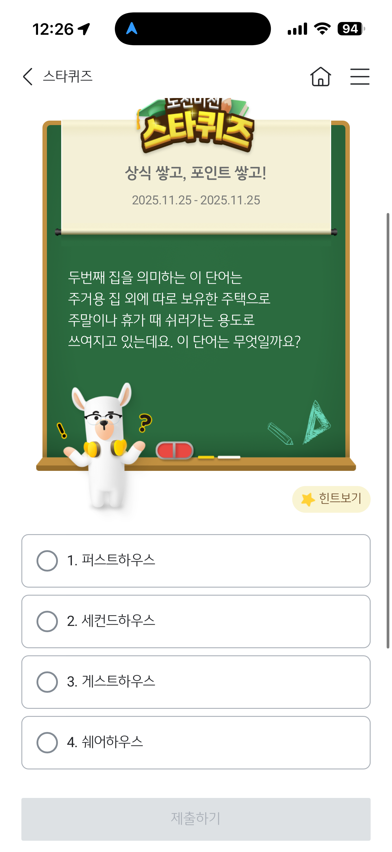 KB스타뱅킹 스타퀴즈 정답은 세컨드하우스 입니다