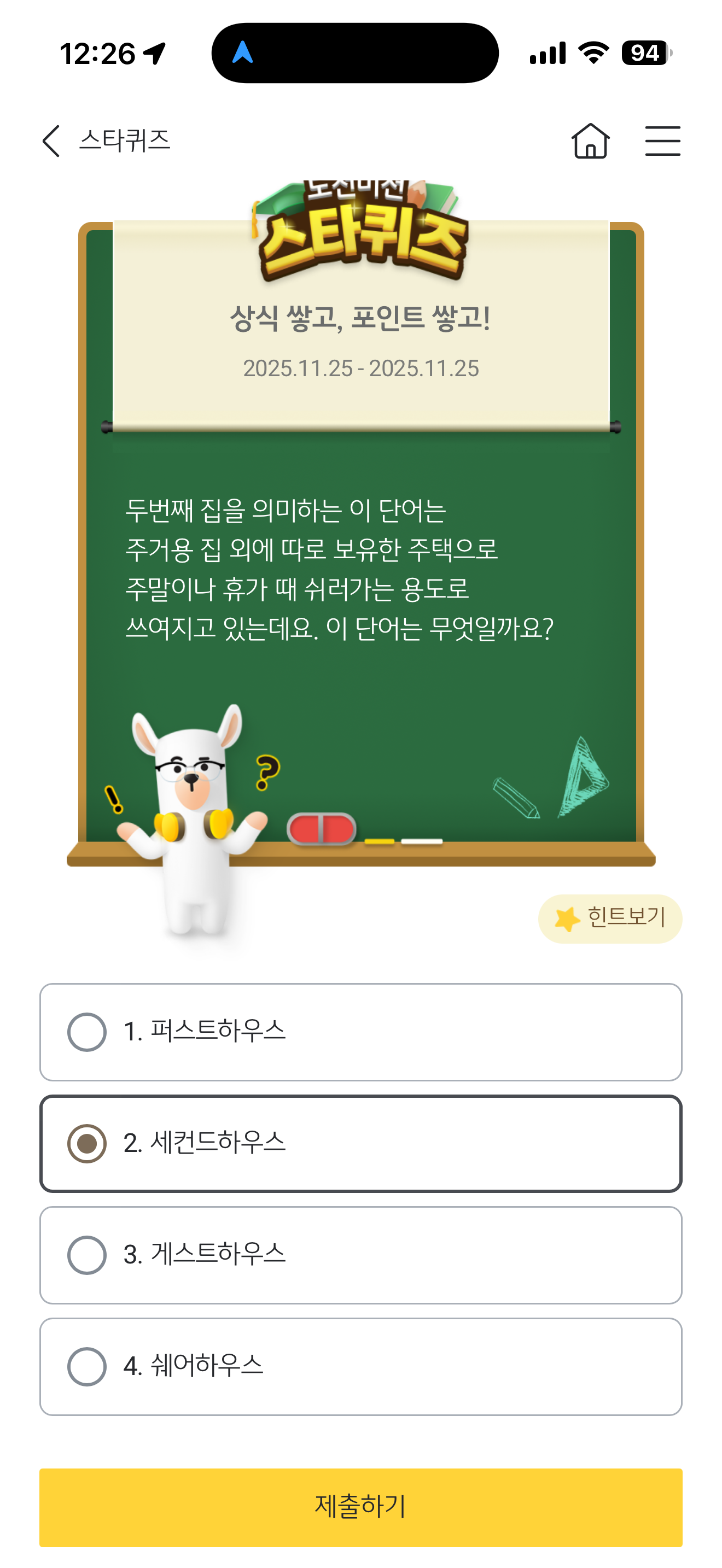 KB스타뱅킹 스타퀴즈 정답은 세컨드하우스 입니다