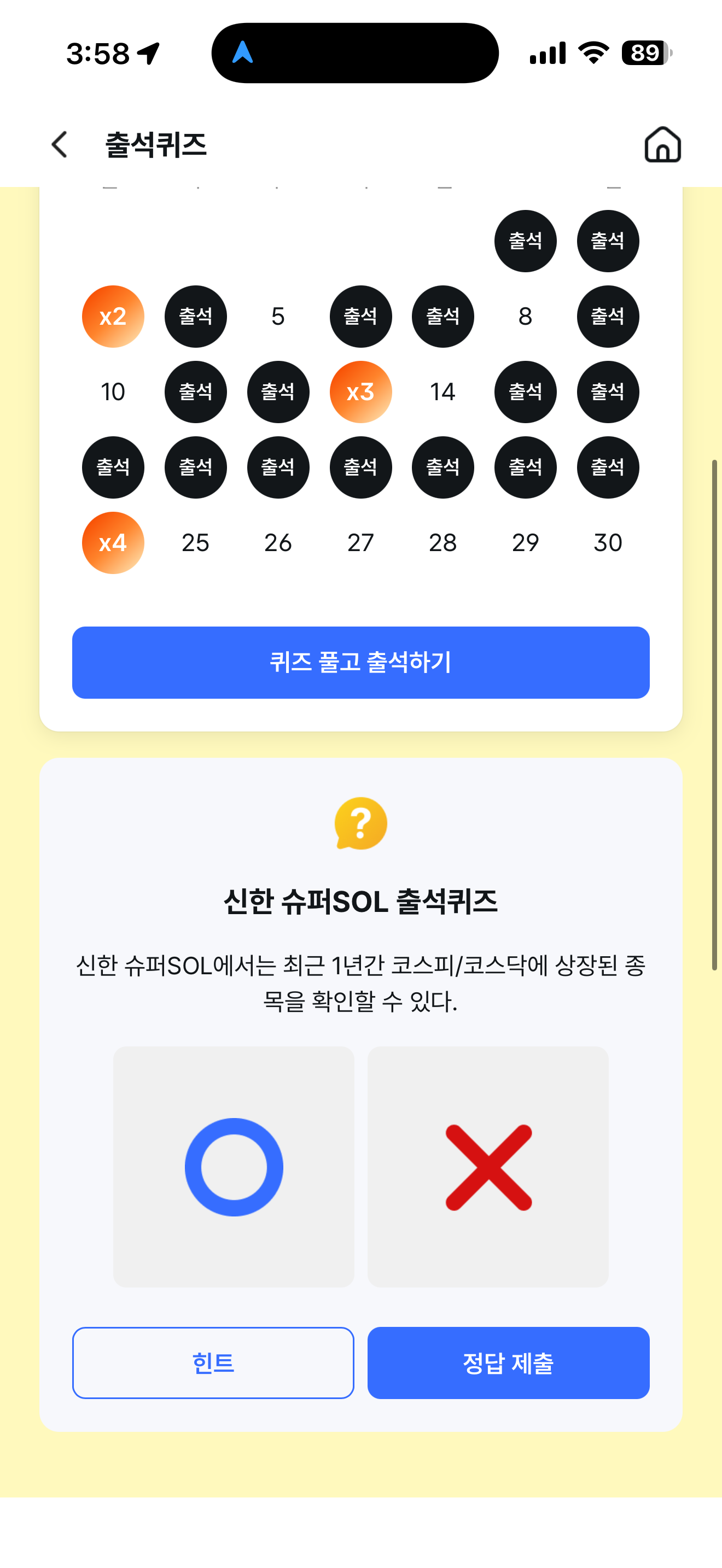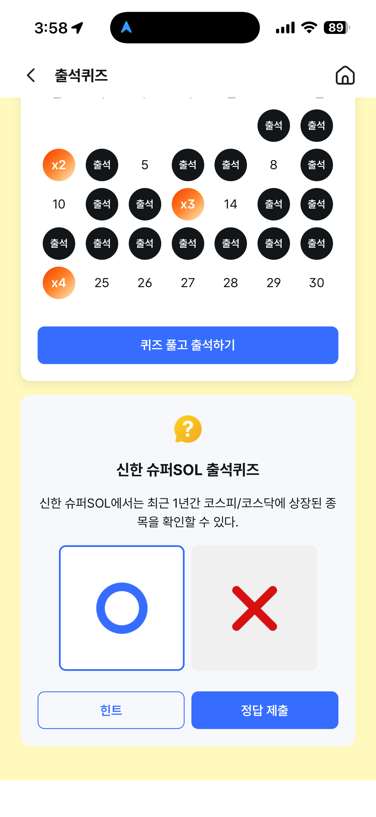 신한 슈퍼SOL 출석퀴즈 정답은 O 입니다