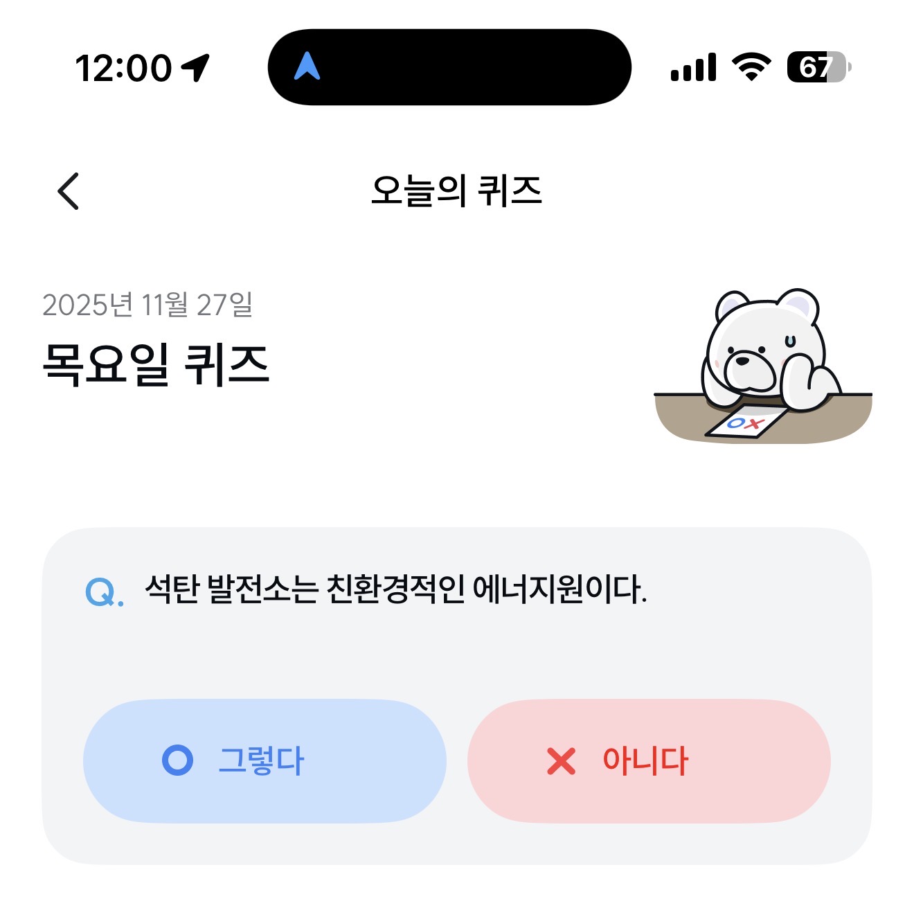기후행동 기회소득 오늘의 퀴즈 11월 27일 정답(석탄 발전소는 친환경적인 에너지원이다)