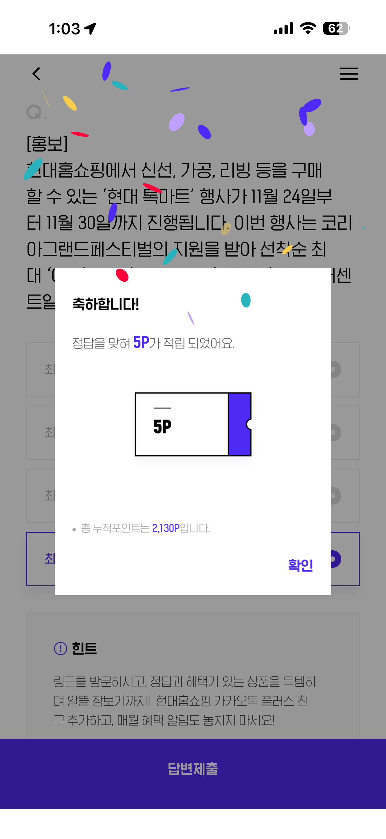 H포인트 퀴즈 정답은 최대 50% 입니다