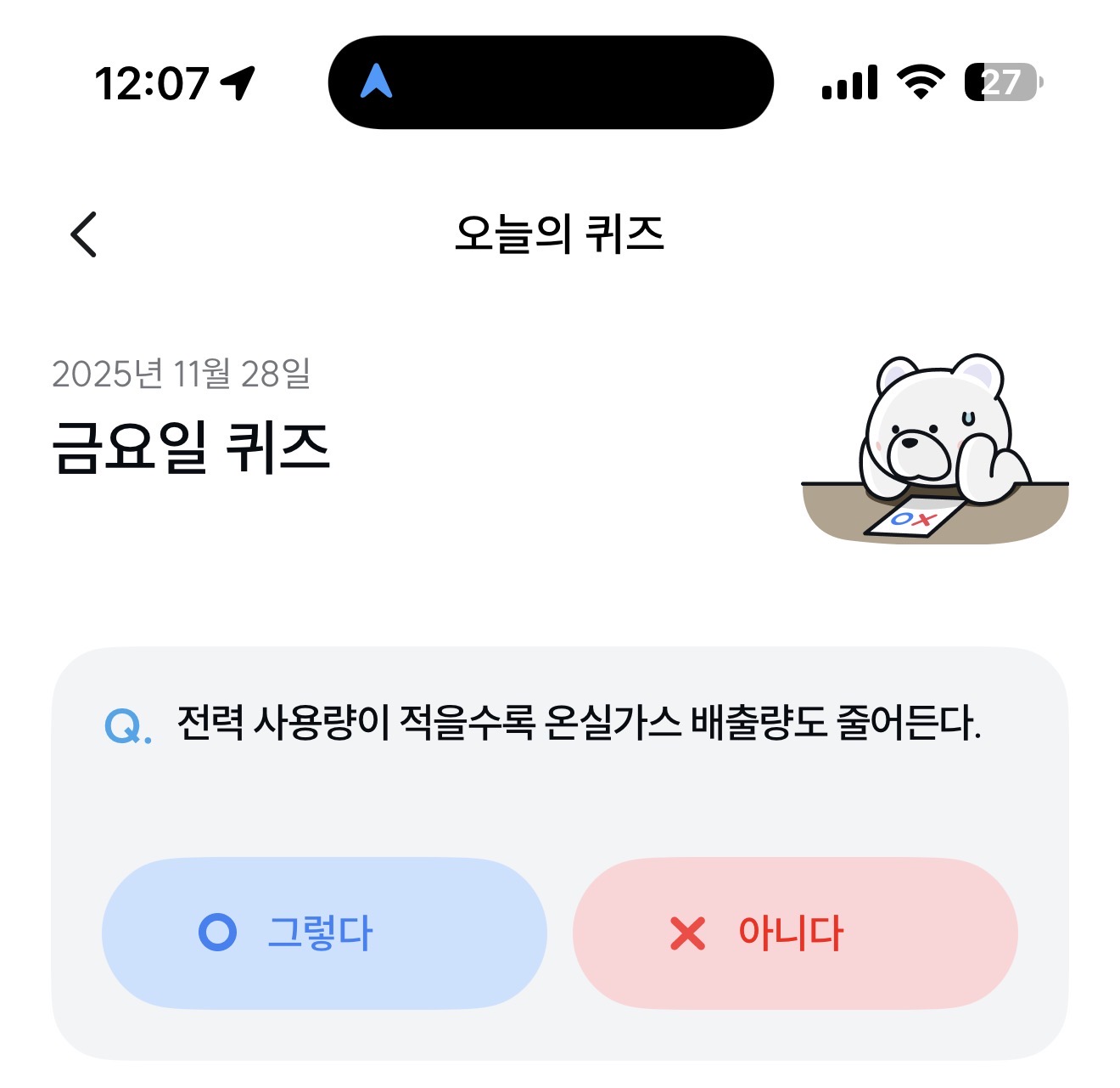 기후행동 기회소득 오늘의 퀴즈 정답은 그렇다 입니다