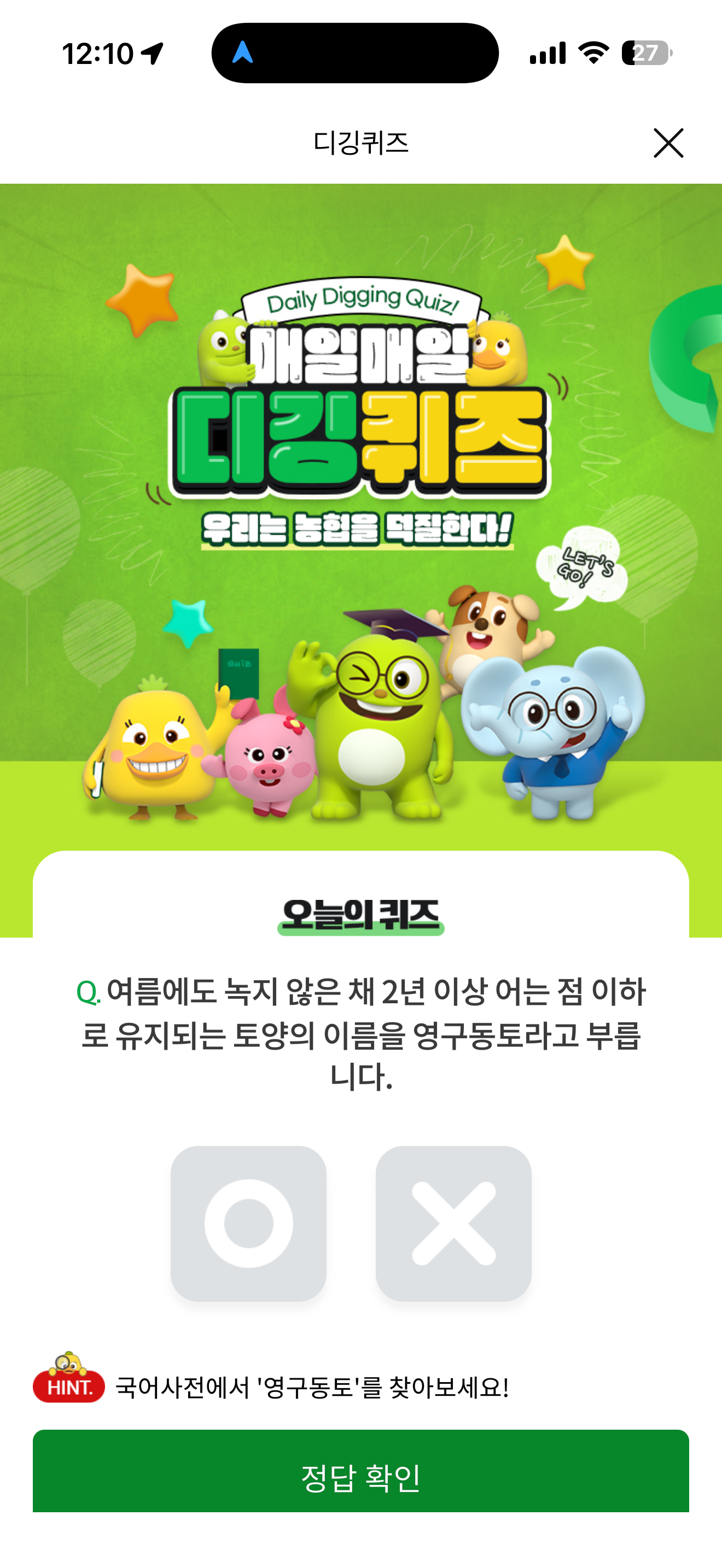 NH올원뱅크 디깅퀴즈 정답은 O 입니다