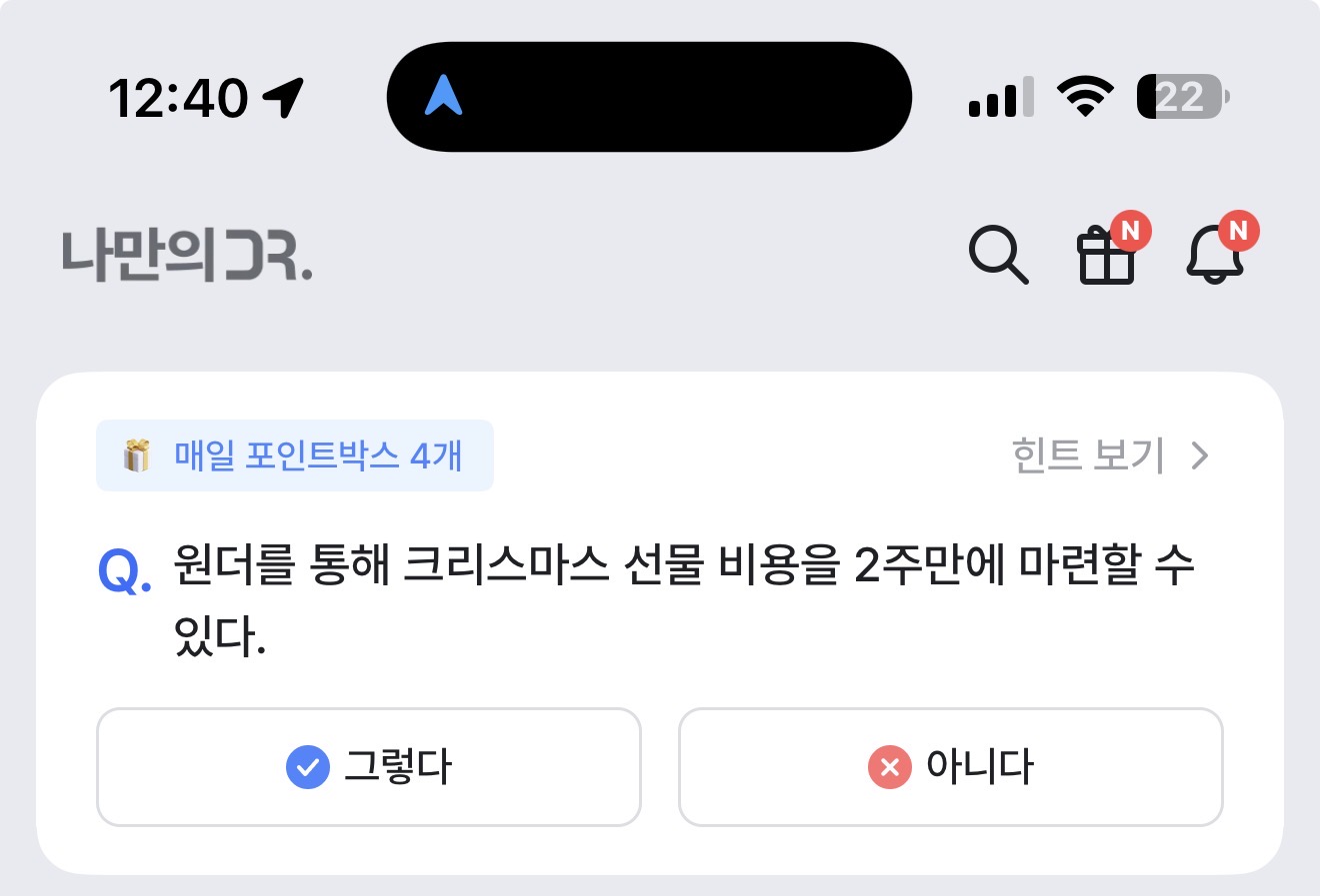 원더를 통해 크리스마스 선물 비용을 2주만에 마련할 수 있다. 그렇다 아니다 선택하면 되는데요. 크리스마스가 이제 약 한 달 정도 남았습니다. 과연 선물 비용을 마련할 수 있을까요? 참고해 보세요