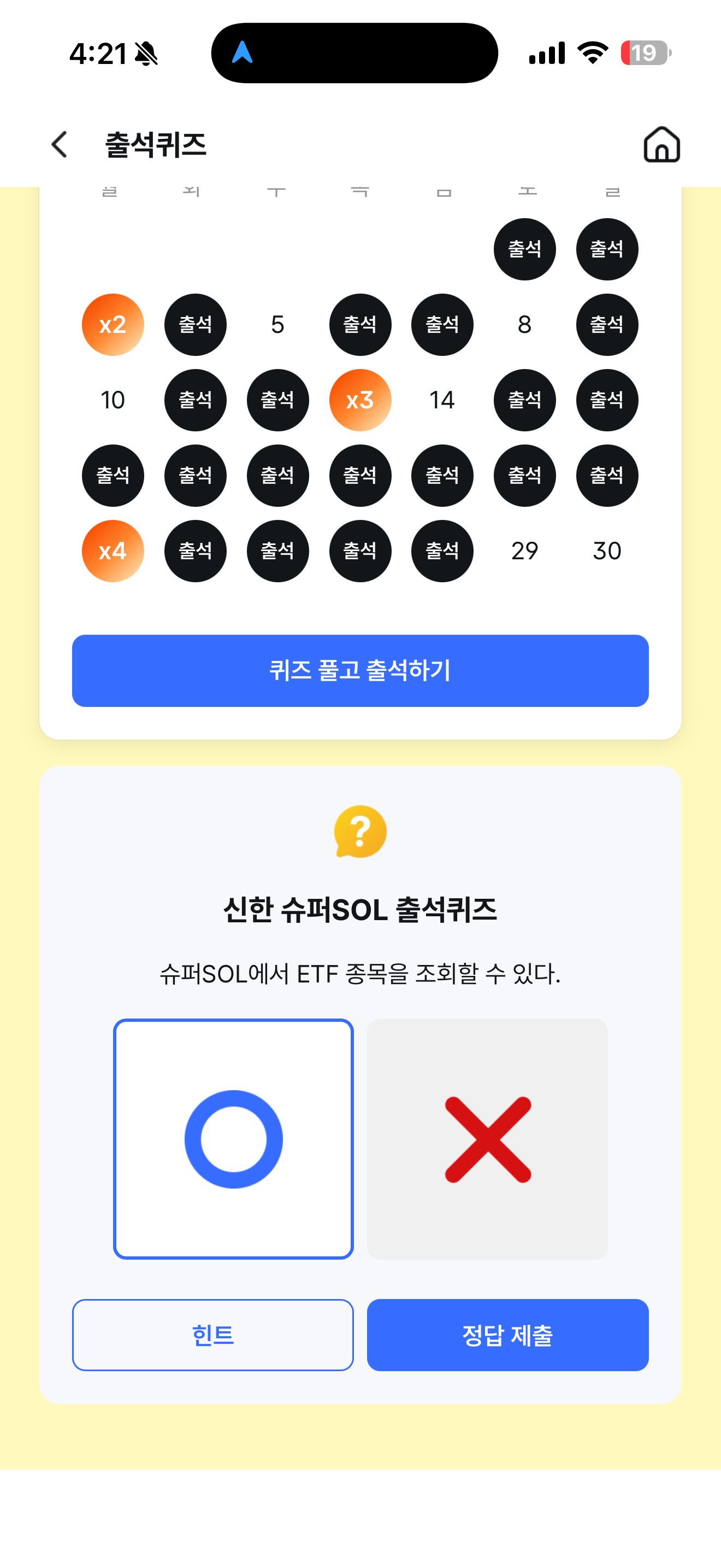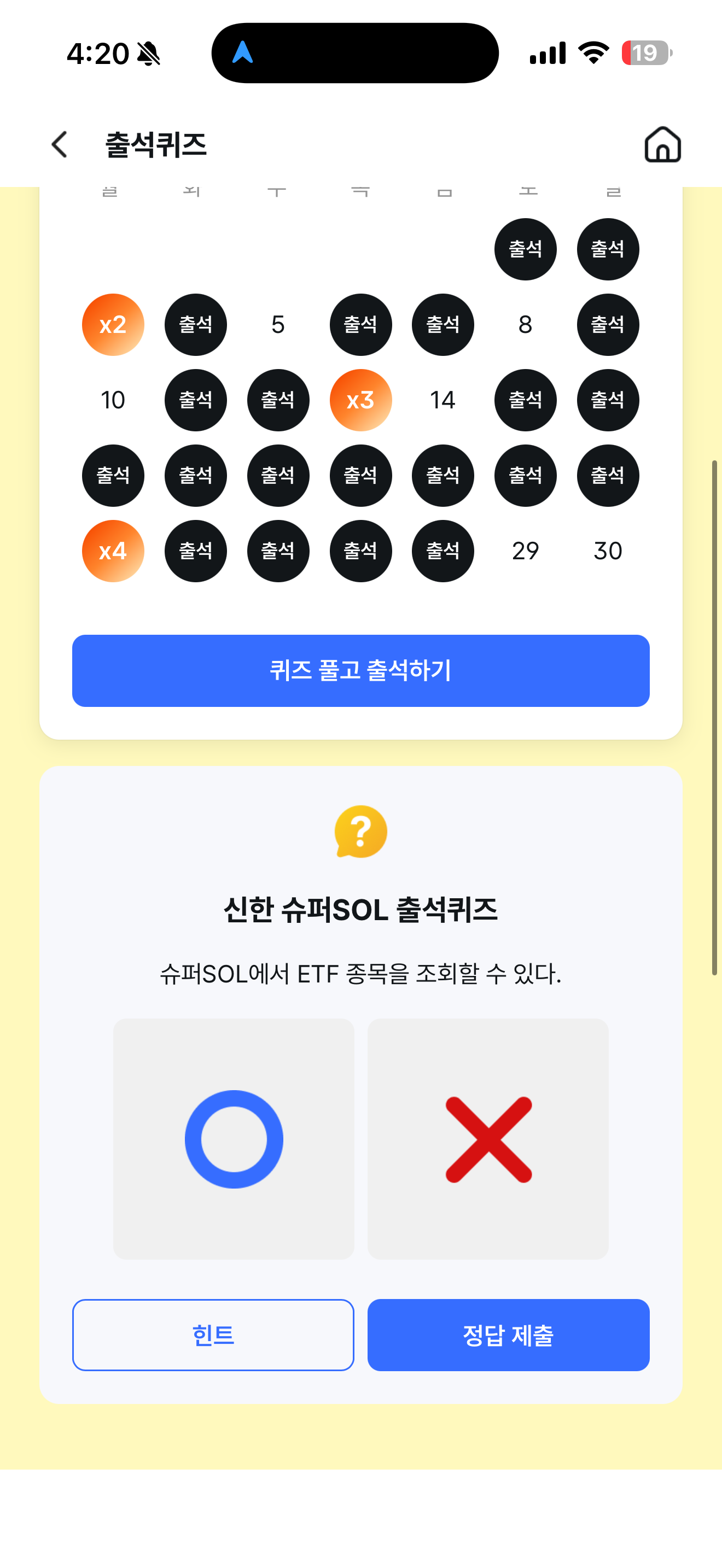 신한 슈퍼SOL 출석퀴즈 정답은 O 입니다