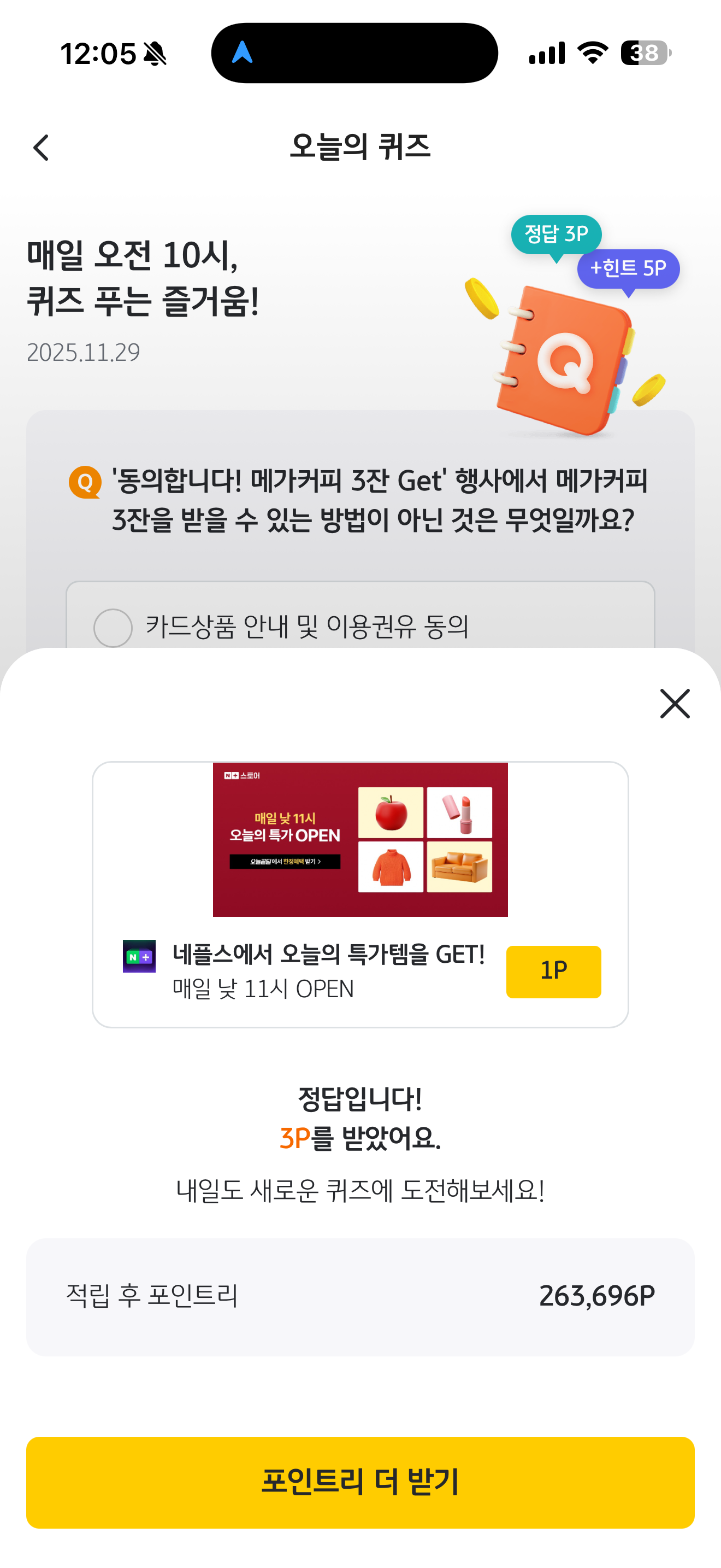 KB Pay 오늘의 퀴즈 11월 29일 정답('동의합니다! 메가커피 3잔 Get' 행사에서 메가커피 3잔을 받을 수 있는 방법이 아닌 것은 무엇일까요?)