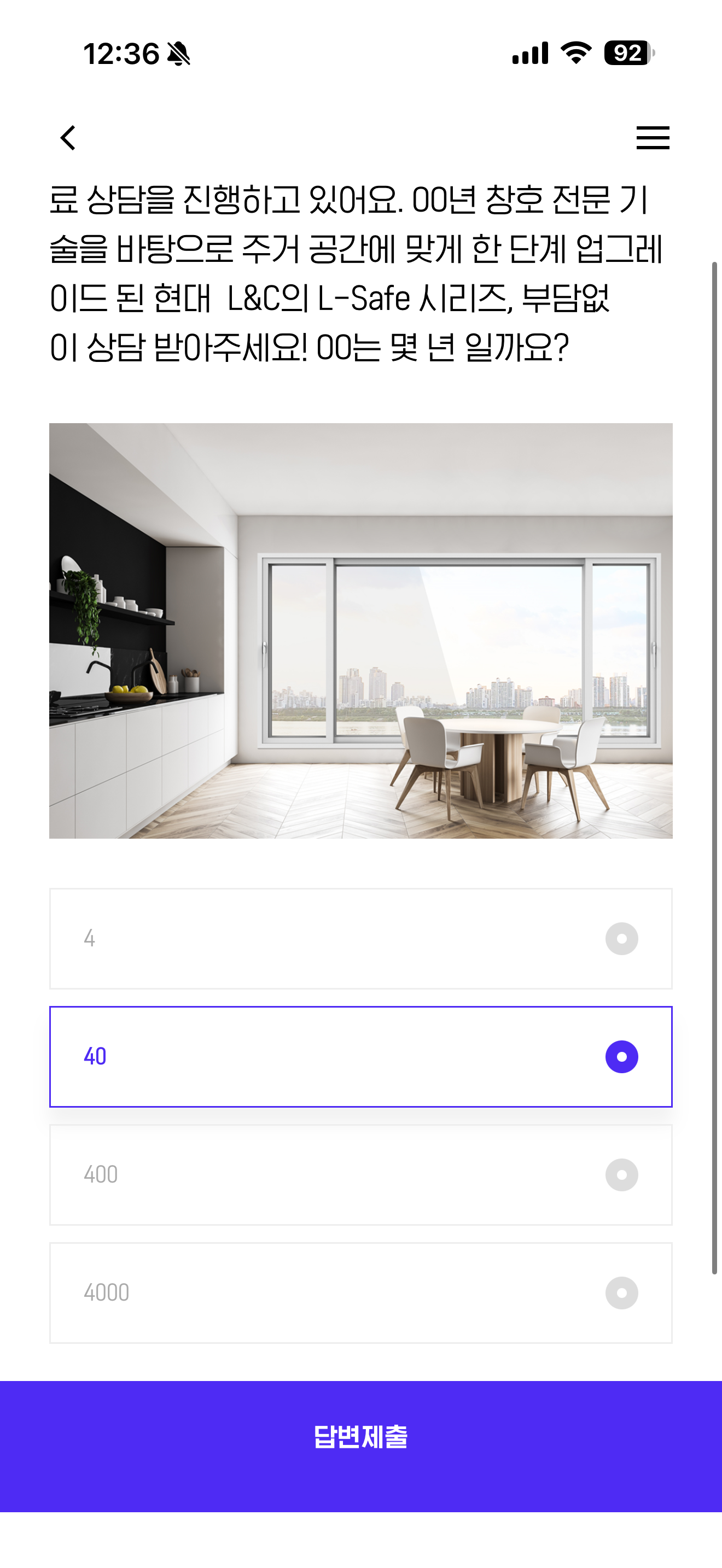건축자재 전문기업 현대 L&C 온라인 몰에서는 창호 구매를 고민하고 계신 분들을 위해 무료 상담을 진행하고 있어요. 00년 창호 전문 기술을 바탕으로 주거 공간에 맞게 한 단계 업그레이드 된 현대 L&C의 L-Safe 시리즈, 부담없이 상당 받아주세요. 00는 몇 년 일까요?