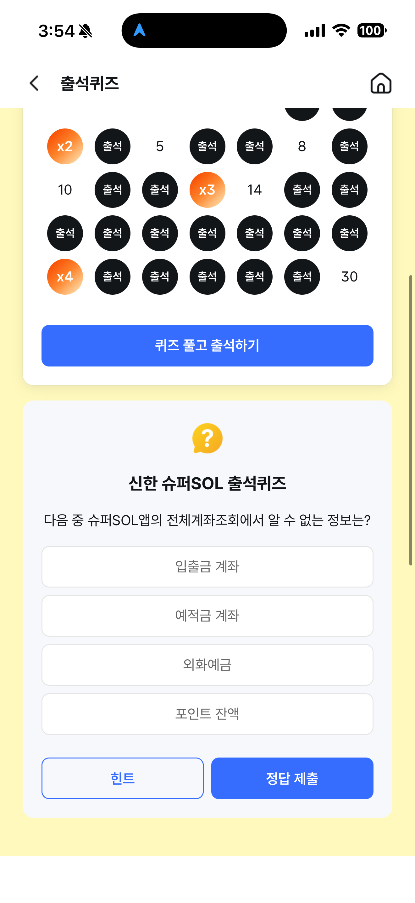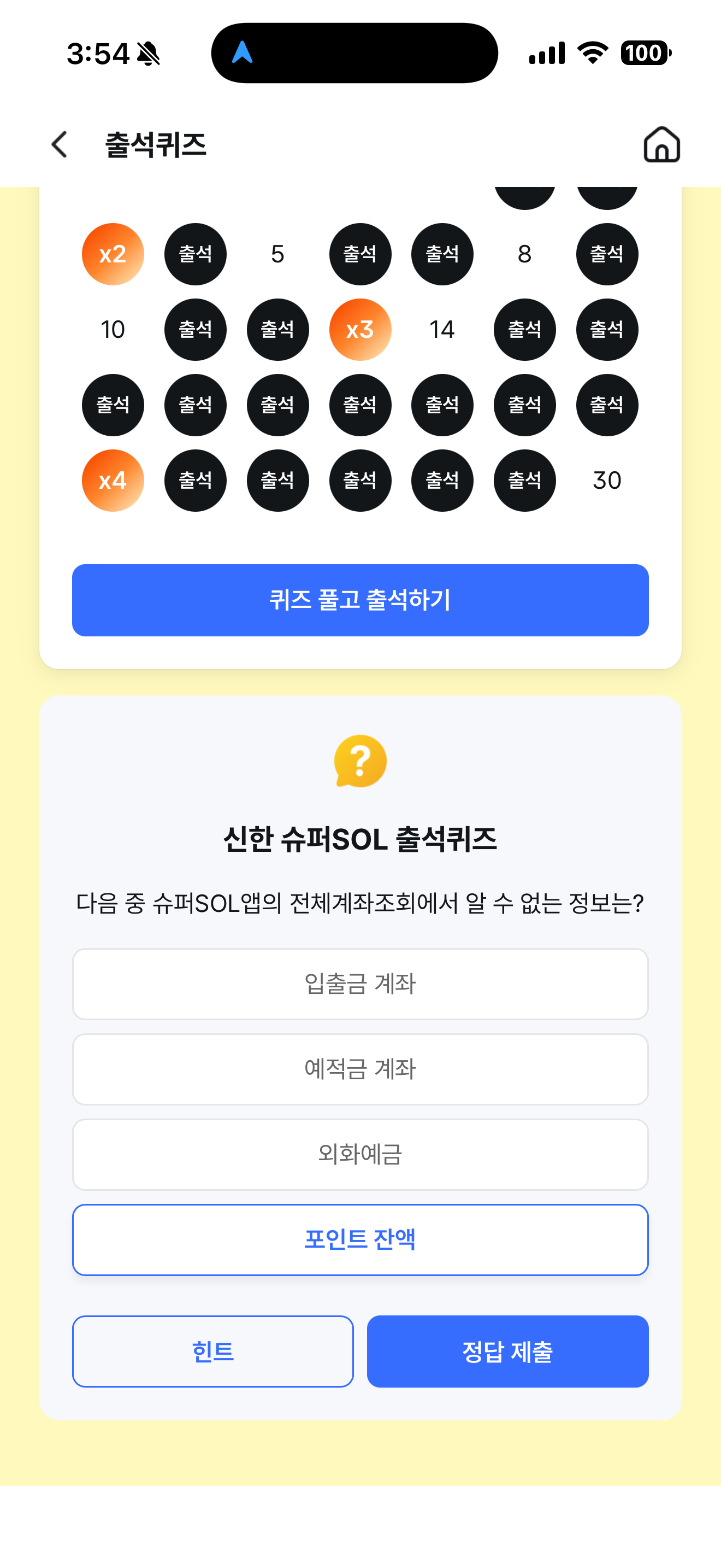 신한 슈퍼SOL 출석퀴즈 정답은 포인트 잔액 입니다