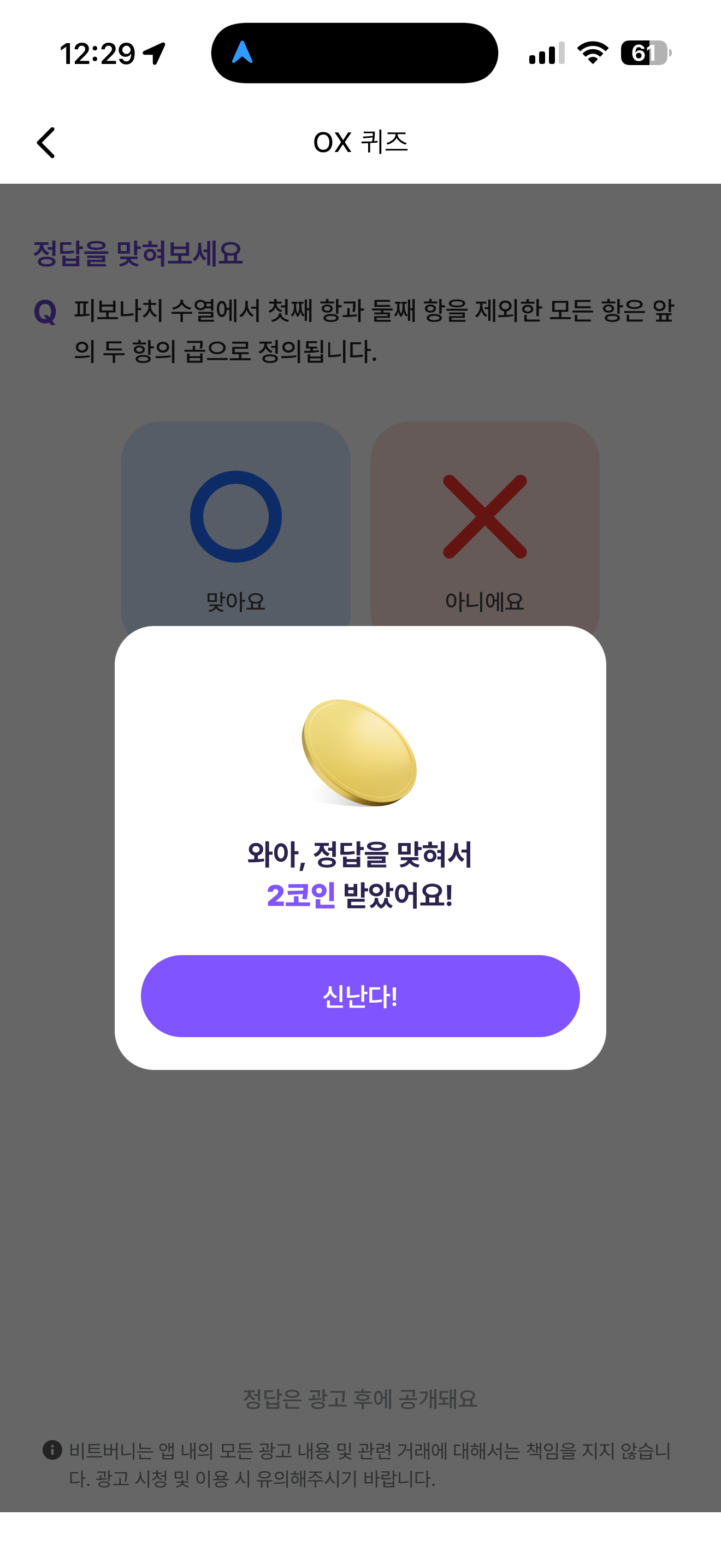 비트버니 오늘의 퀴즈 OX 퀴즈 정답은 X 입니다