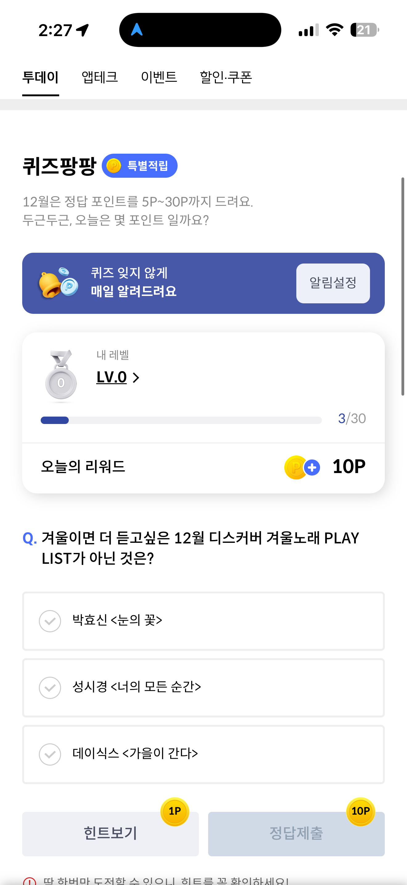 신한카드 퀴즈팡팡 12월 4일 문제입니다