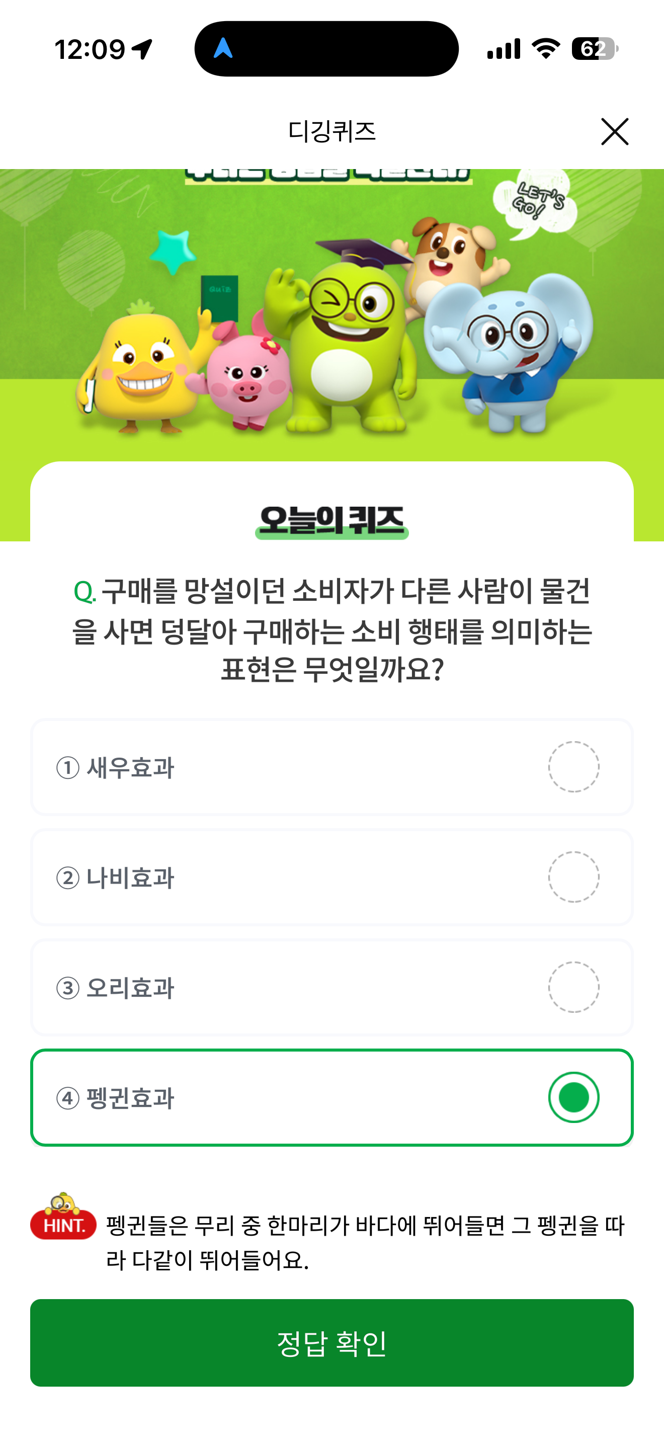 NH올원뱅크 디깅퀴즈 정답은 펭귄효과 입니다