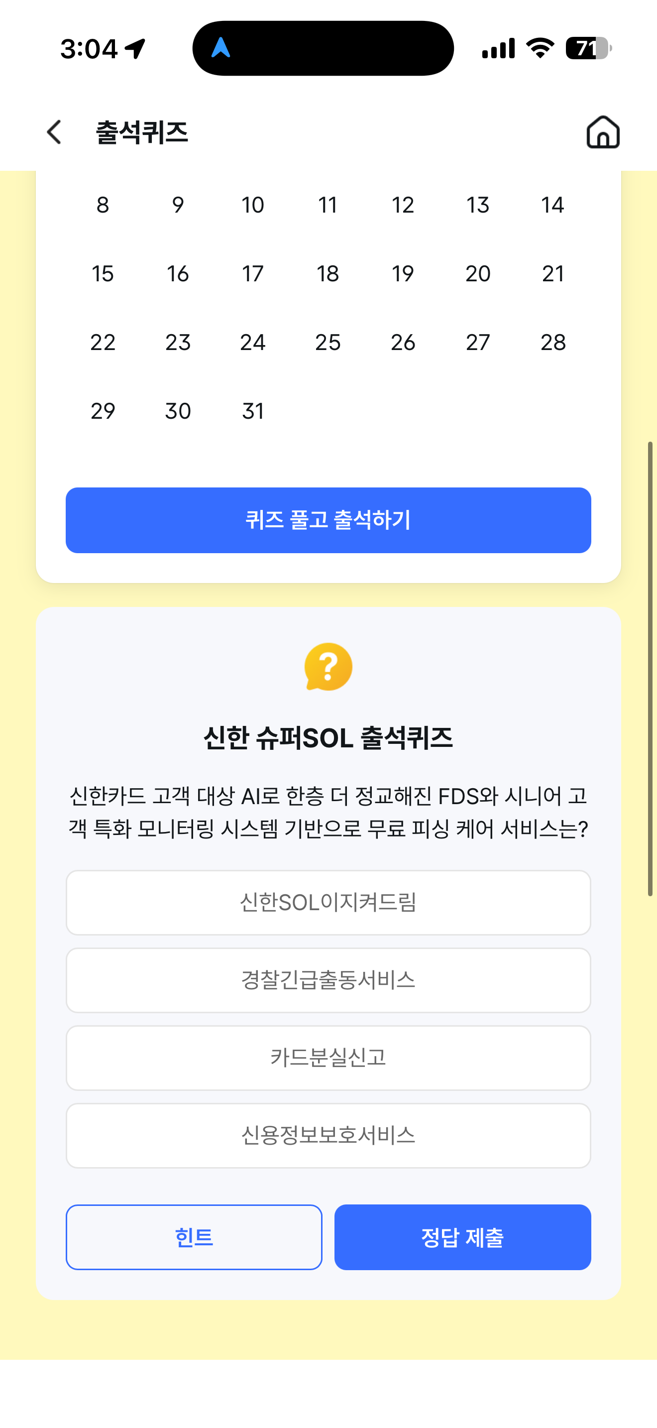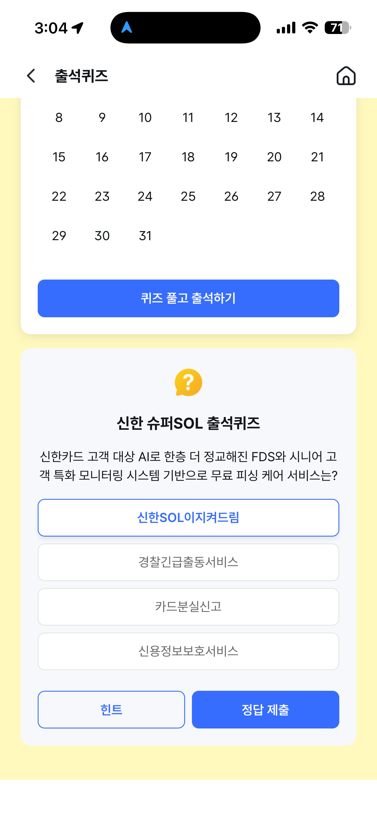 신한 슈퍼SOL 출석퀴즈 정답은 신한SOL이지켜드림 입니다