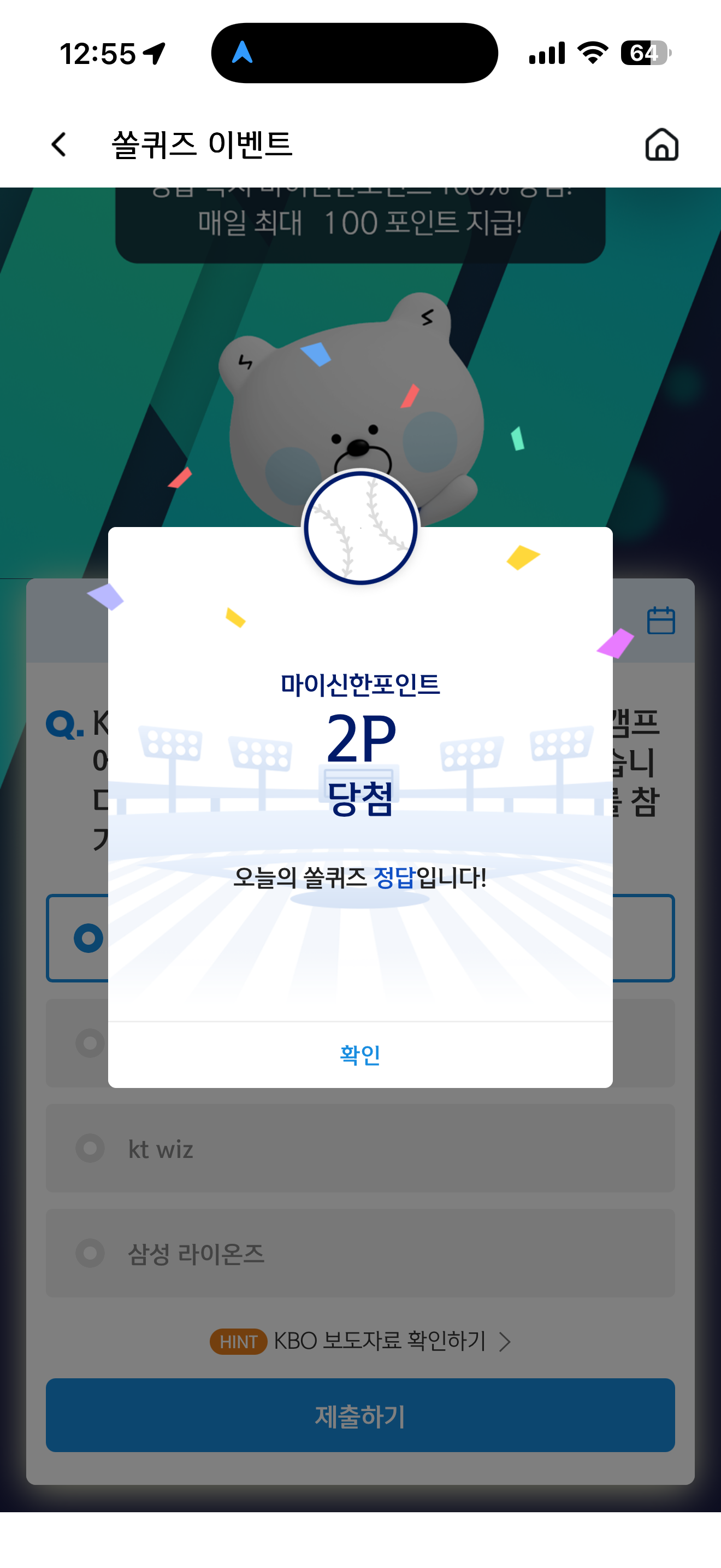 신한 슈퍼SOL 야구/상식 쏠퀴즈 정답은 LG 트윈스 입니다