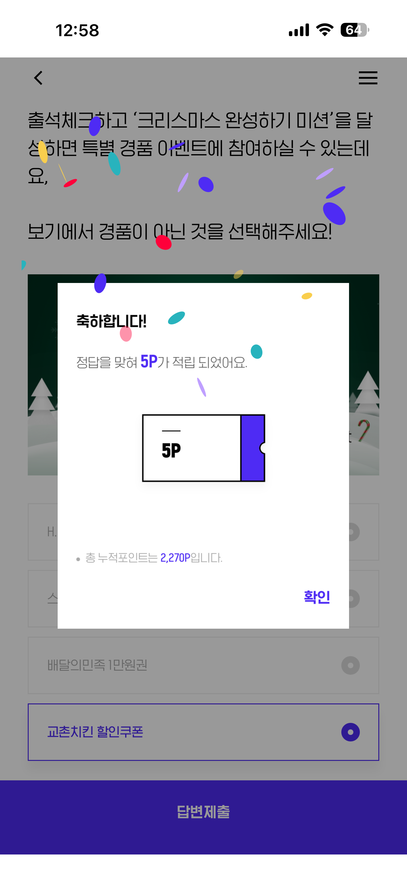 H포인트 퀴즈 정답은 교촌치킨 할인쿠폰 입니다