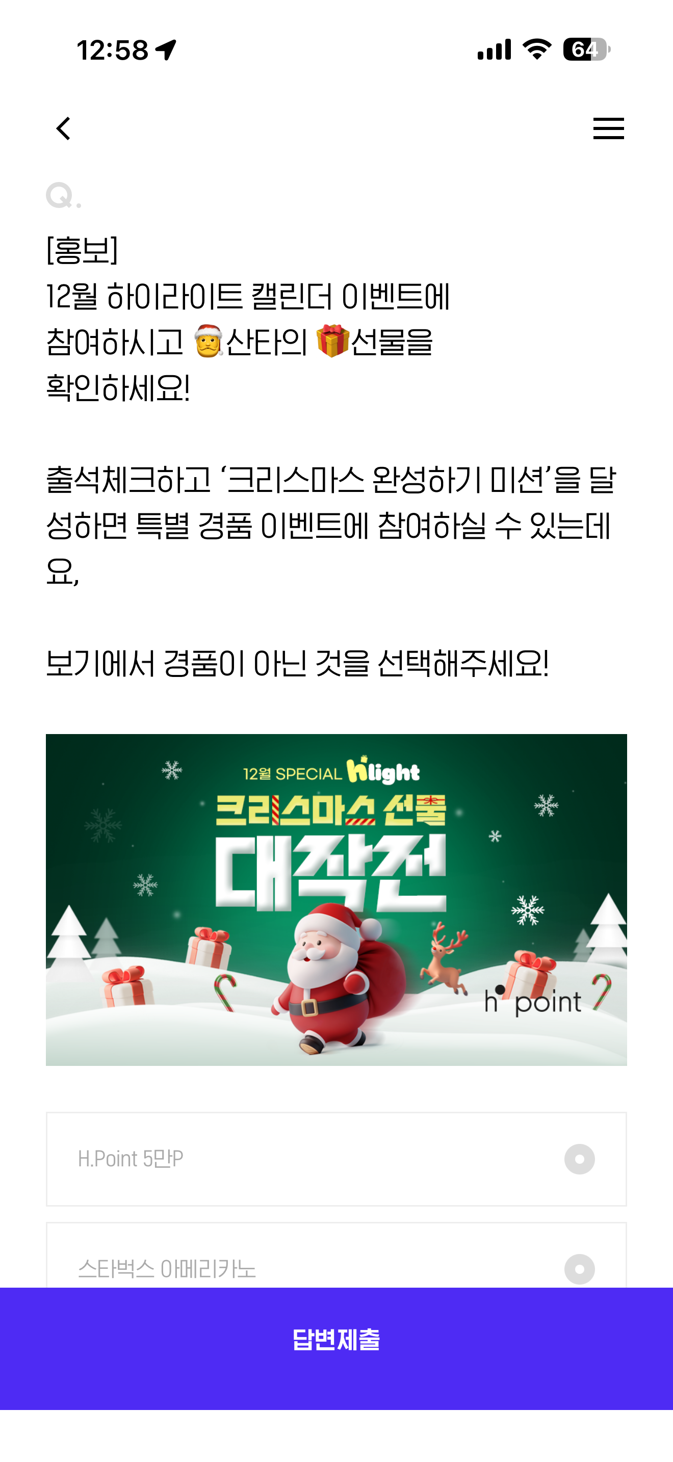 H포인트 퀴즈 12월 8일 문제입니다
