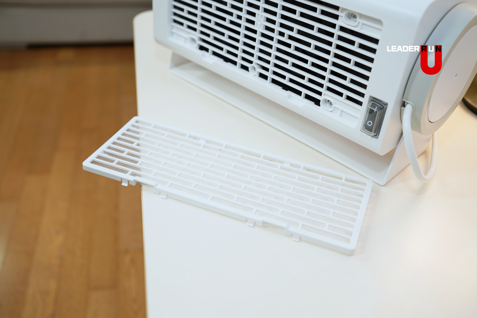 뒷면에는 먼지 필터가 있어 위생적으로 사용 가능하며, 전원 스위치는 후면 안전 커버 안에 있어 물 사용이 많은 욕실에서도 한층 더 안전하게 컨트롤할 수 있습니다.