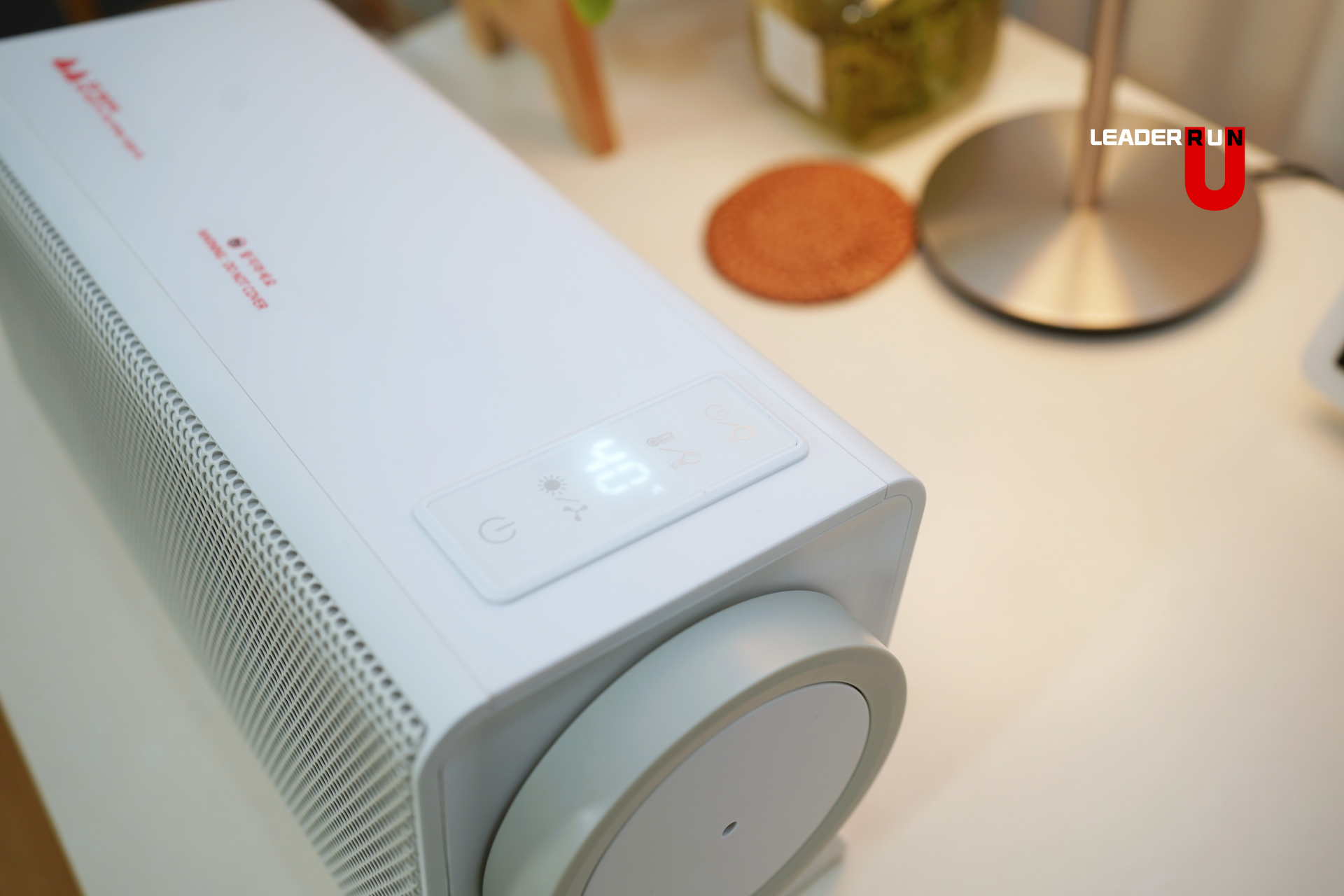 전면에 위치한 터치패널을 통해 송풍 / 온도조절 / 잠금 / 히터 강약 / 타이머(1~9시간) / 무드등 설정이 가능합니다.