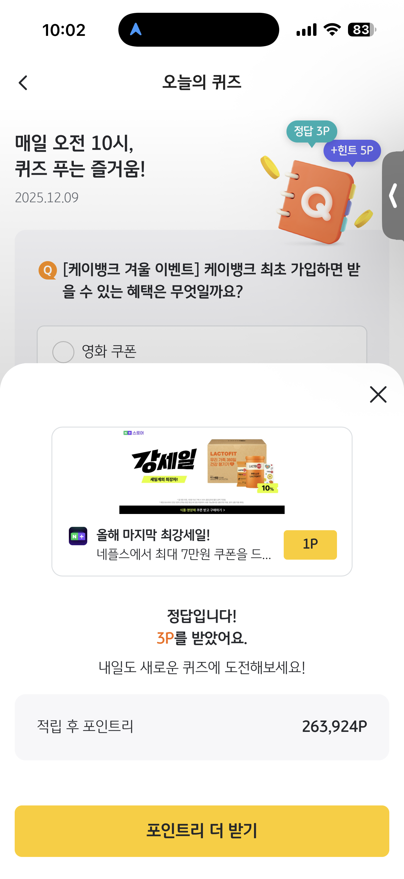 KB Pay 오늘의 퀴즈 12월 9일 문제입니다