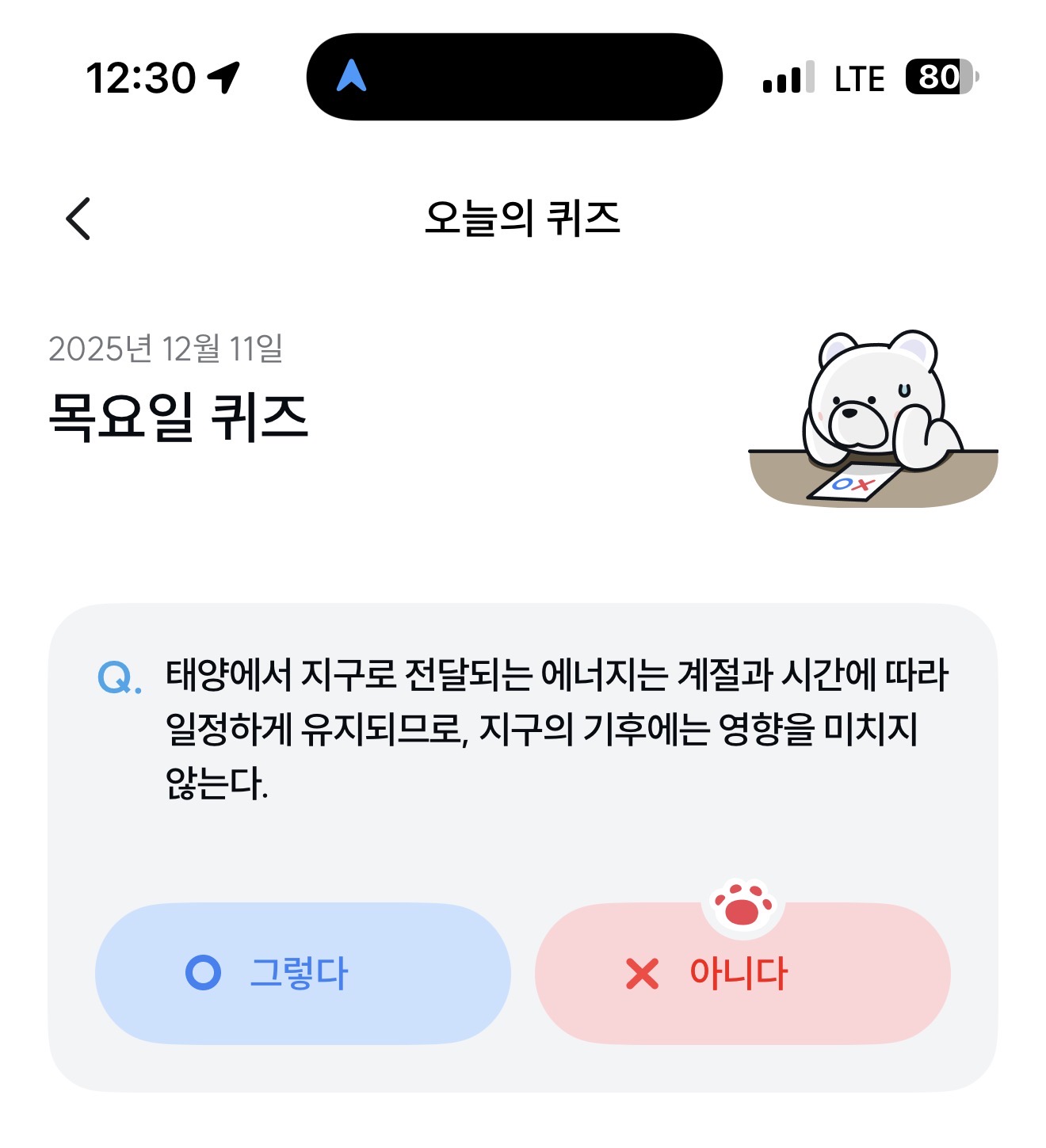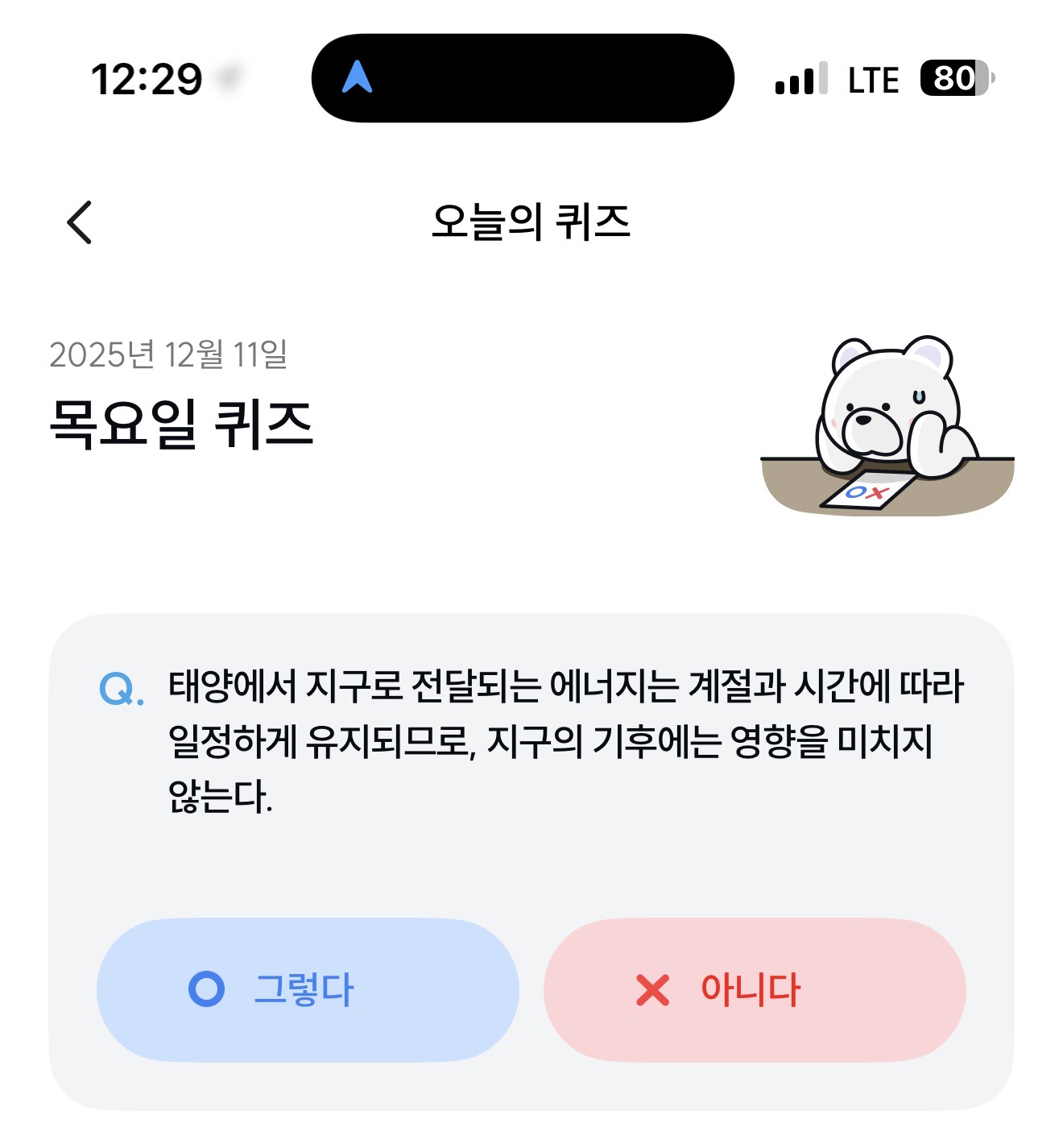기후행동 기회소득 오늘의 퀴즈 정답은 아니다 입니다