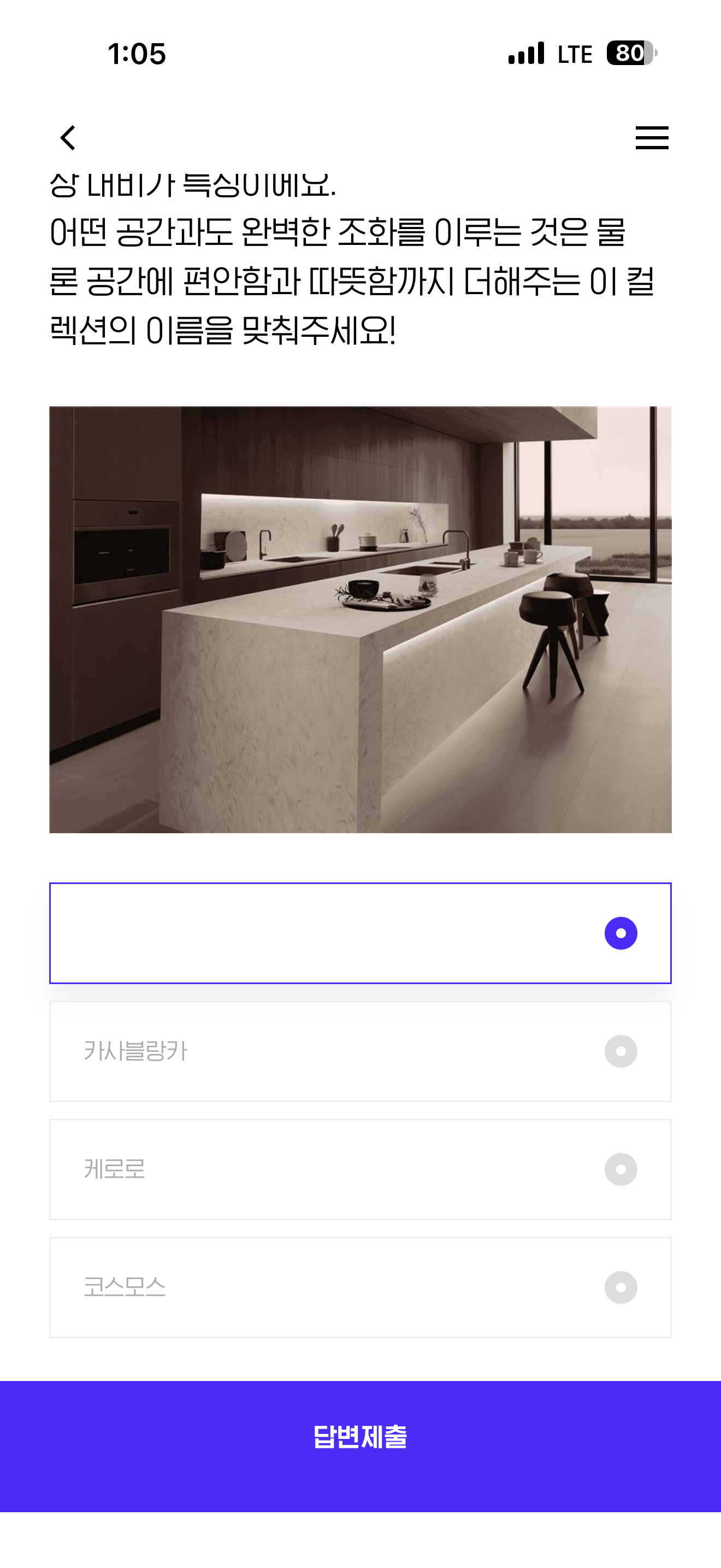 건축자재 전문기업 현대L&C의 하이엔드 인조대리석 '하넥스'의 "ㅋㅅㅋㅇㄷ" 컬렉션은 깃털이 날리는 듯한 섬세하고 유려한 패턴과 낮은 색상 대비가 특징이에요. 어떤 공간과도 완벽한 조화를 이루는 것을 물론 공간에 편안함과 따뜻함까지 더해주는 이 컬렉션의 이름을 맞춰주세요!
