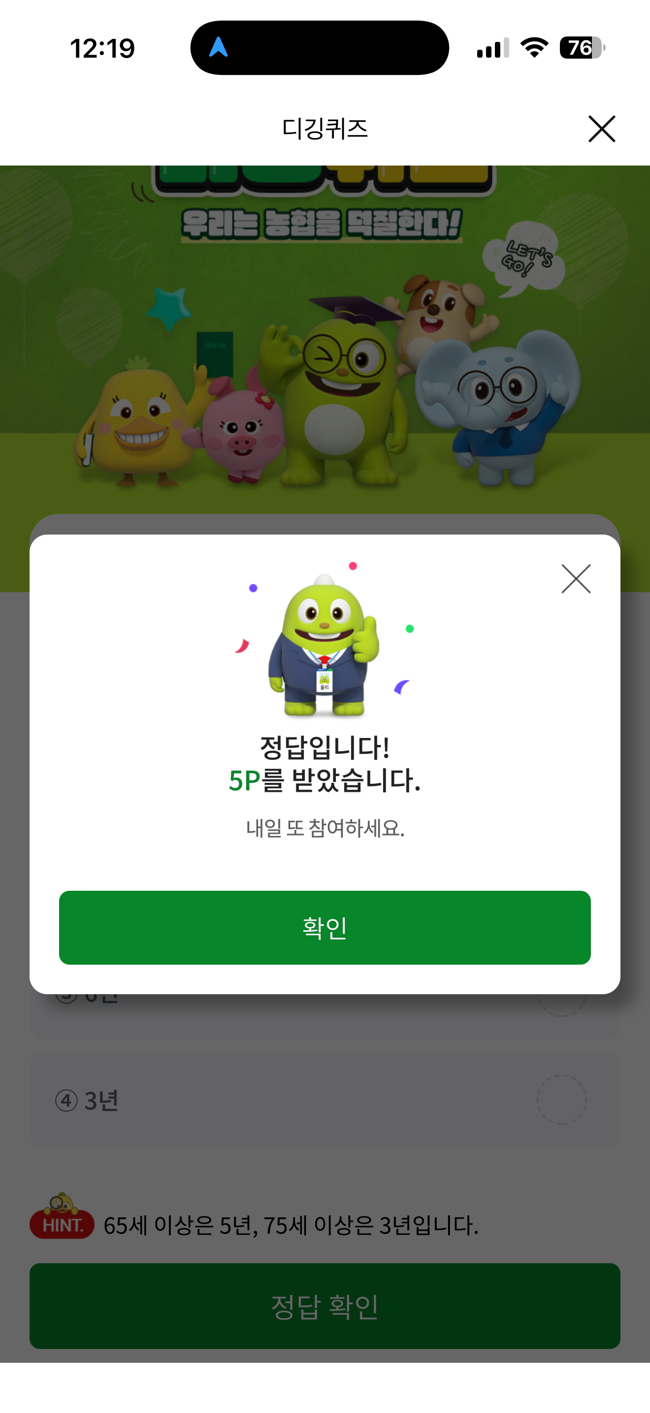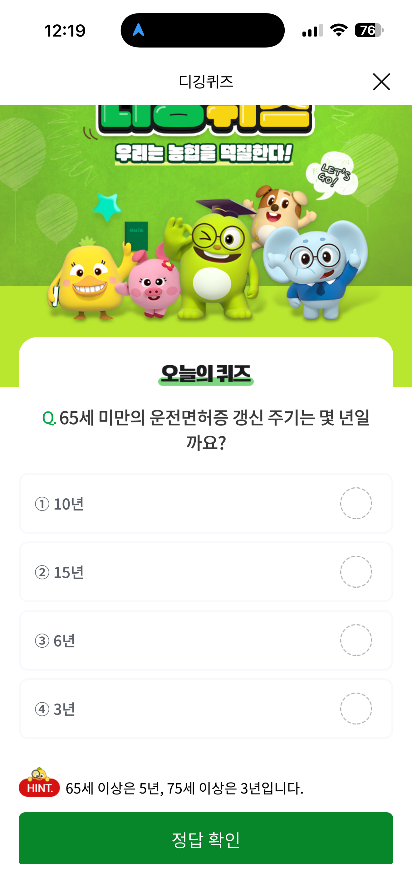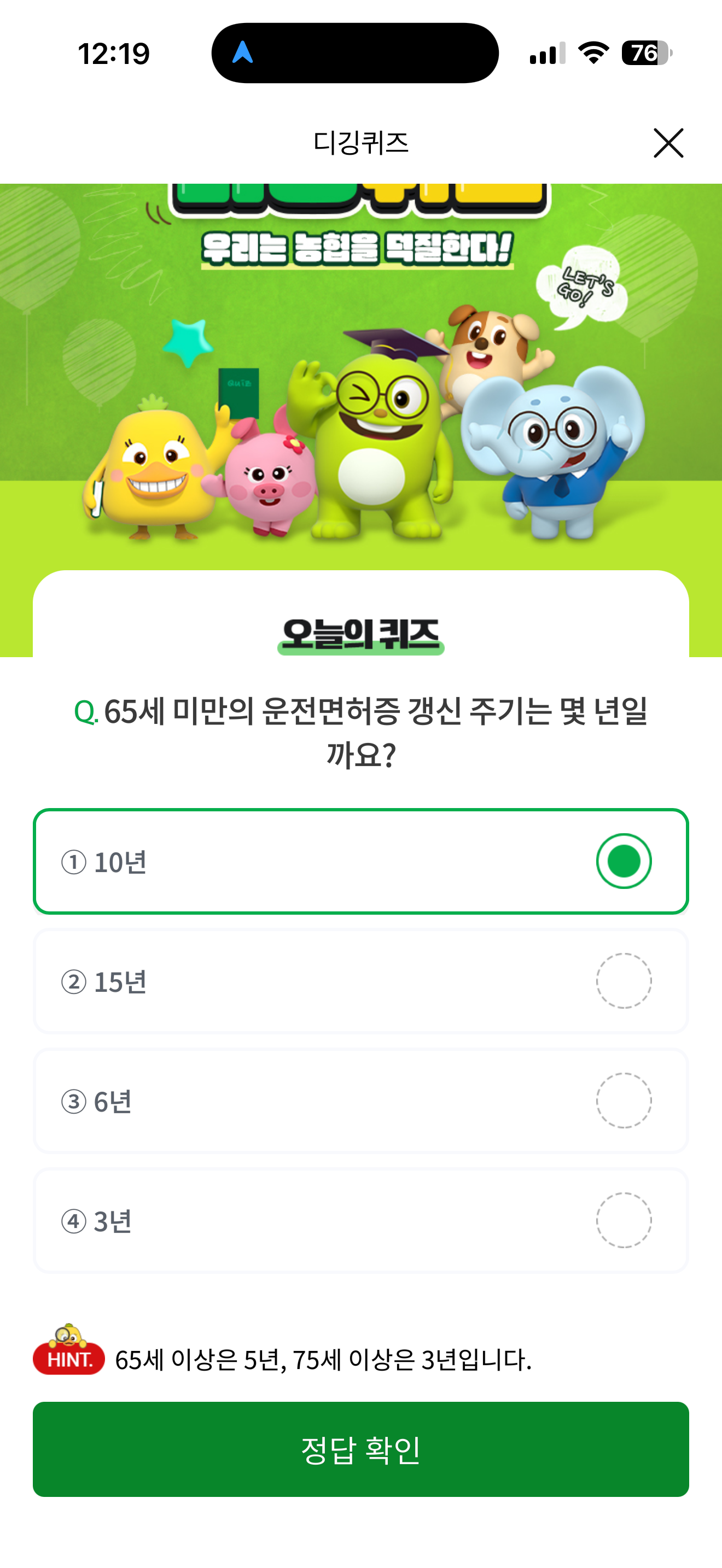 NH올원뱅크 디깅퀴즈 정답은 10년 입니다