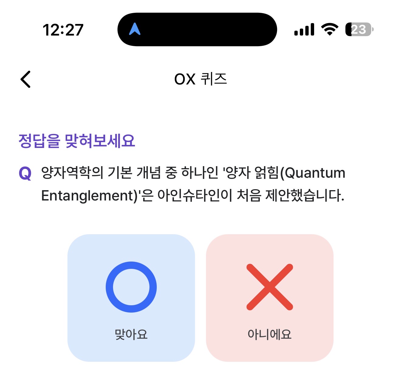 양자역학의 기본 개념 중 하나인 '양자 얽힘(Quantum Entanglement)'은 아인슈타인이 처음 제안했습니다. O, X 퀴즈인데요. 양자 얽힘은 잘 들어보지 못한 용어죠. 아인슈타인은 많은 분들이 알고 계실텐데요. 상식으로 알아두세요