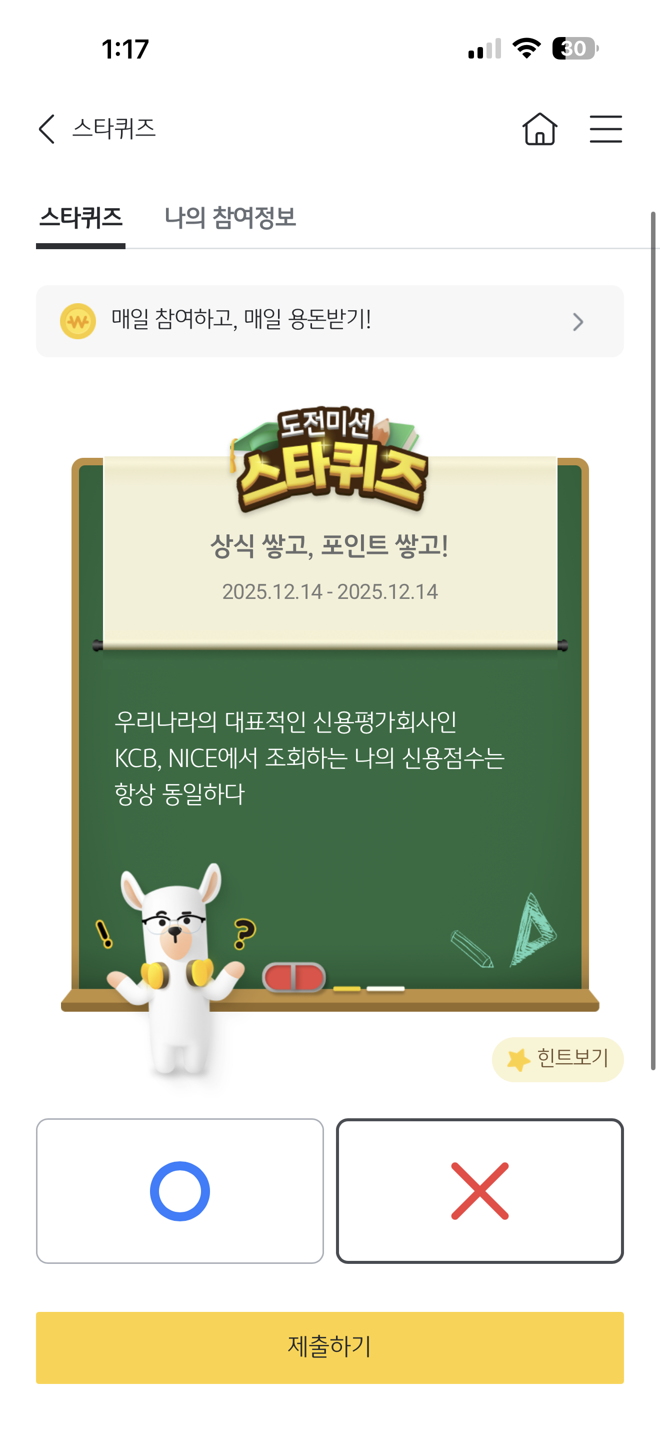 KB스타뱅킹 스타퀴즈 12월 14일 문제입니다