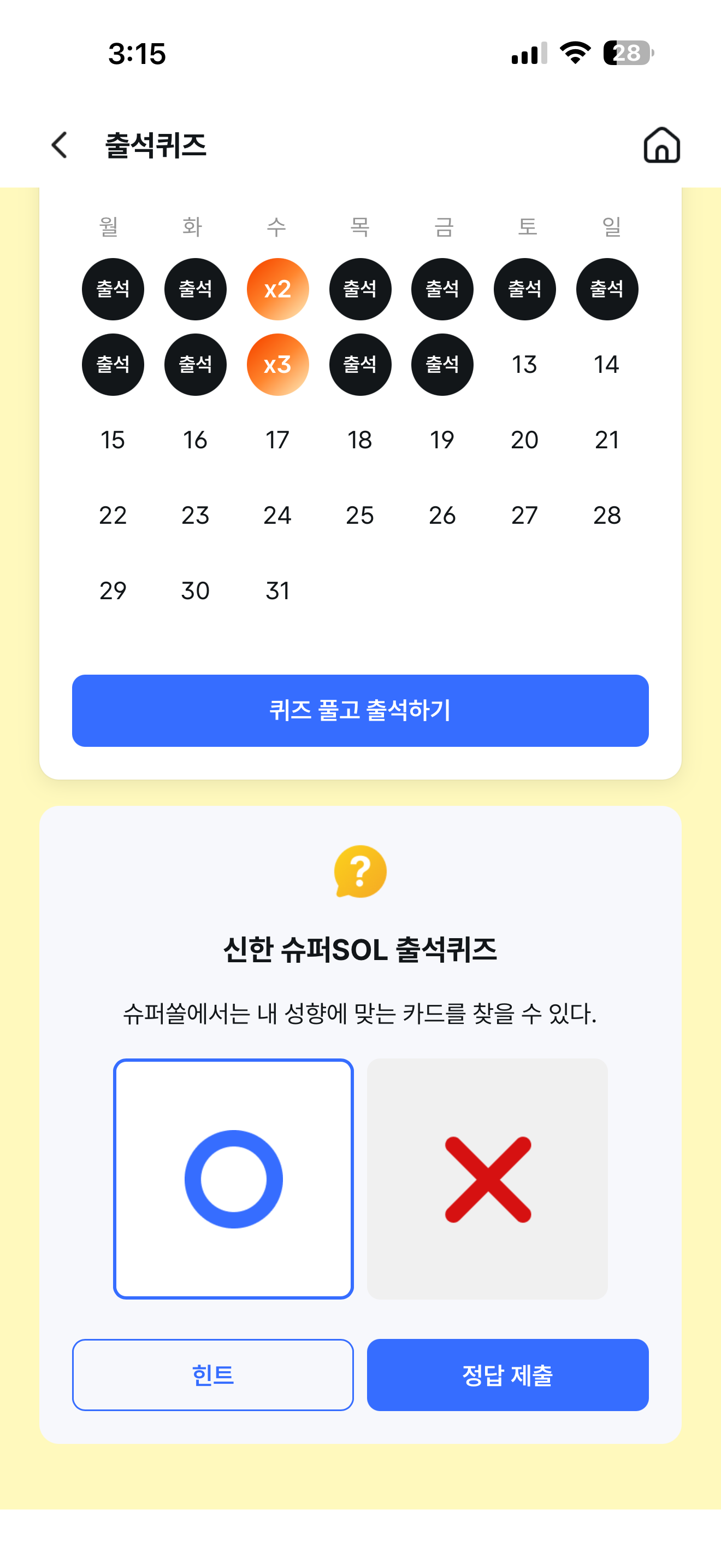 신한 슈퍼SOL 출석퀴즈 정답은 O 입니다