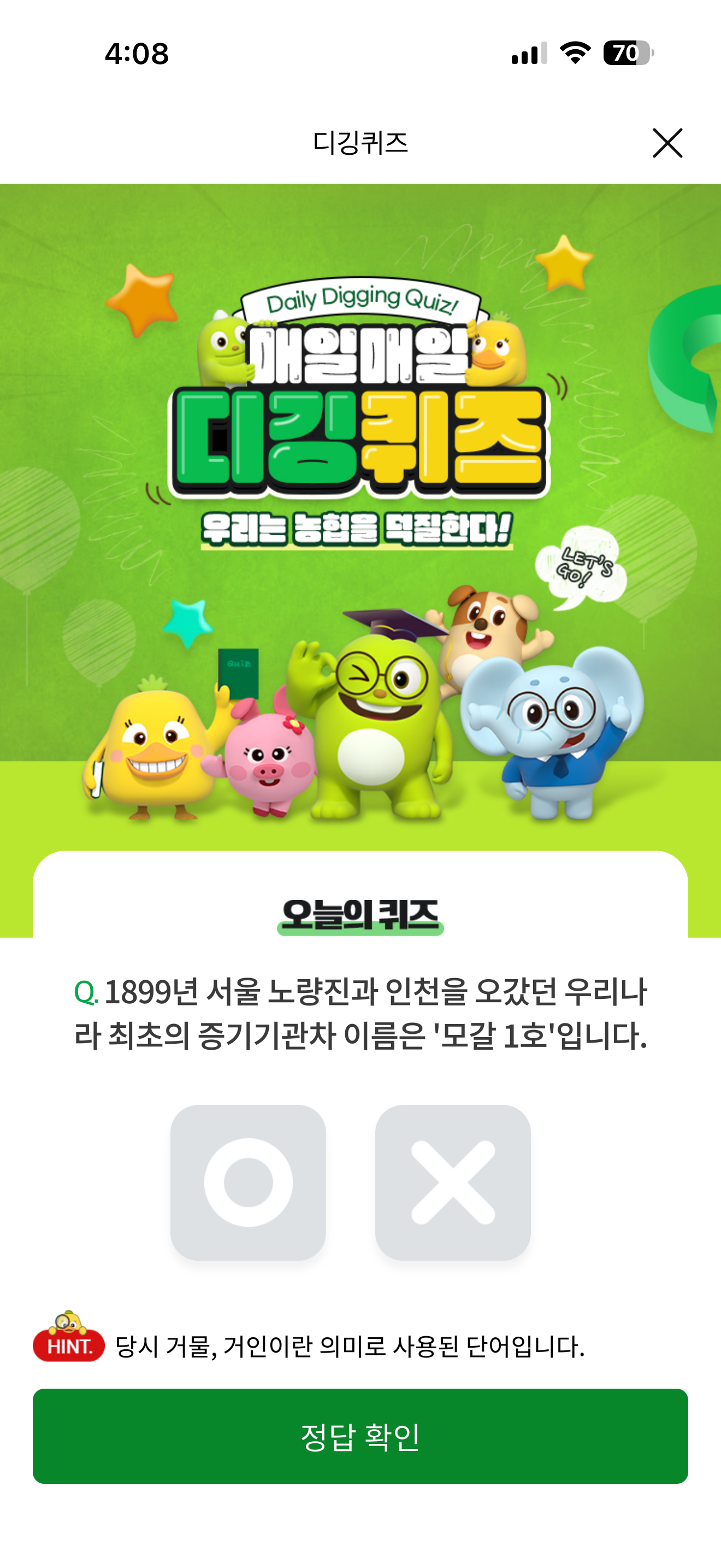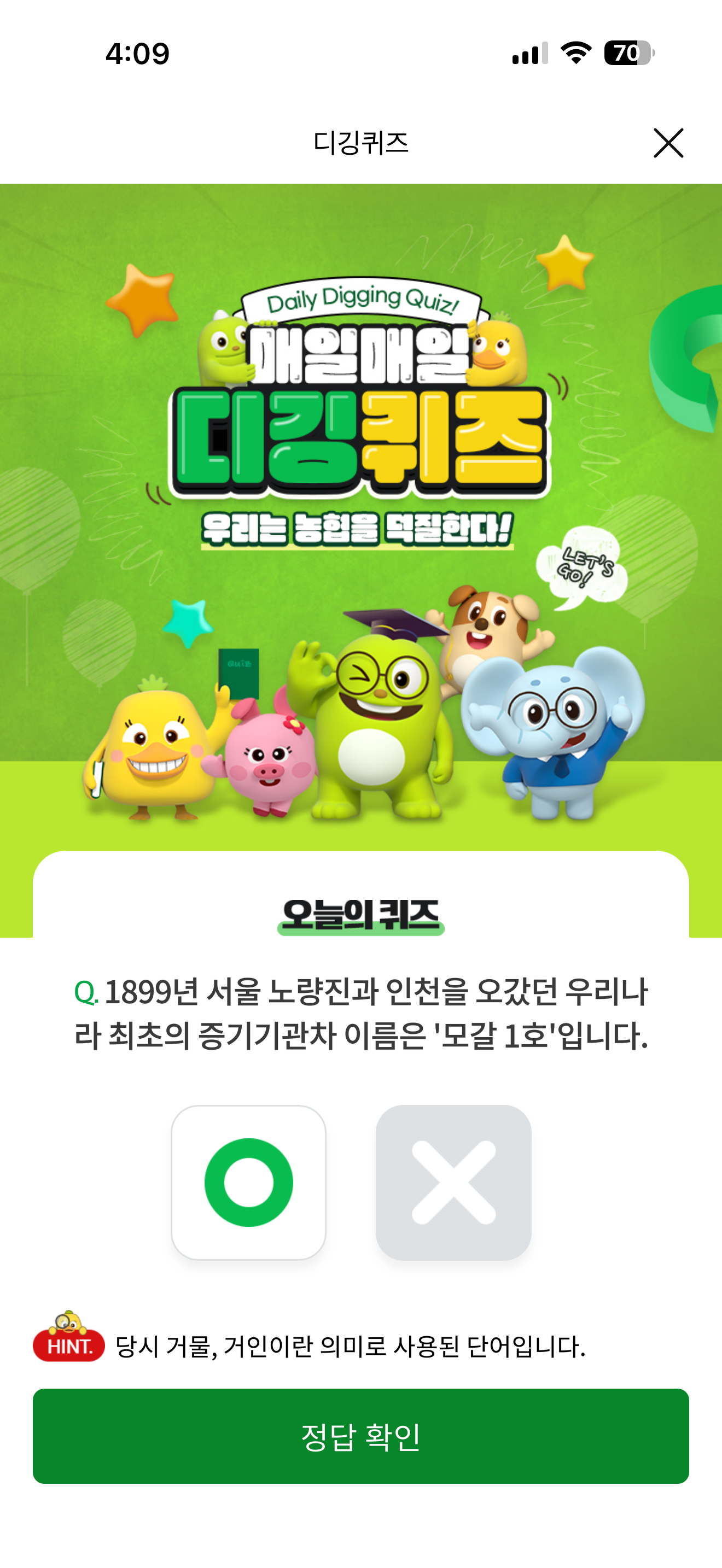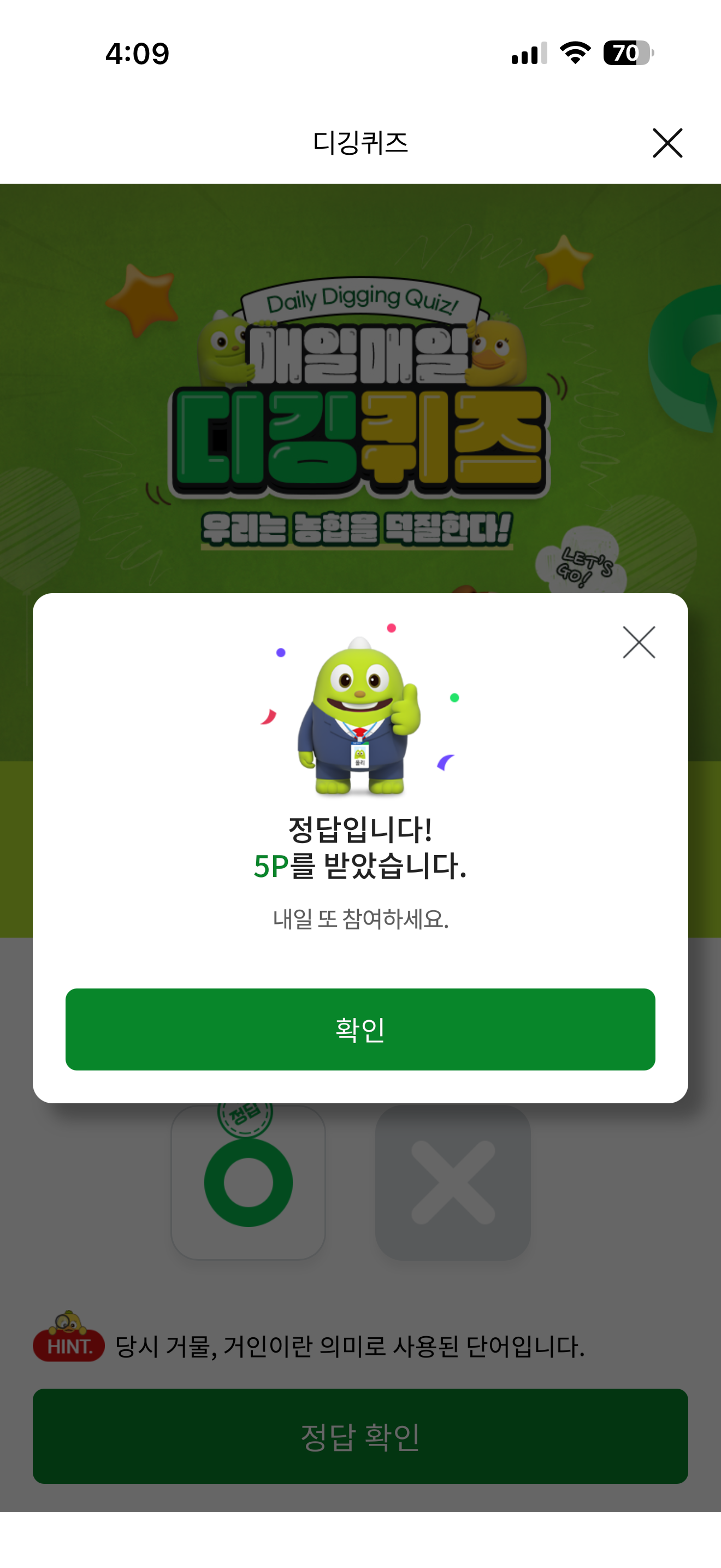 NH올원뱅크 디깅퀴즈 정답은 O 입니다