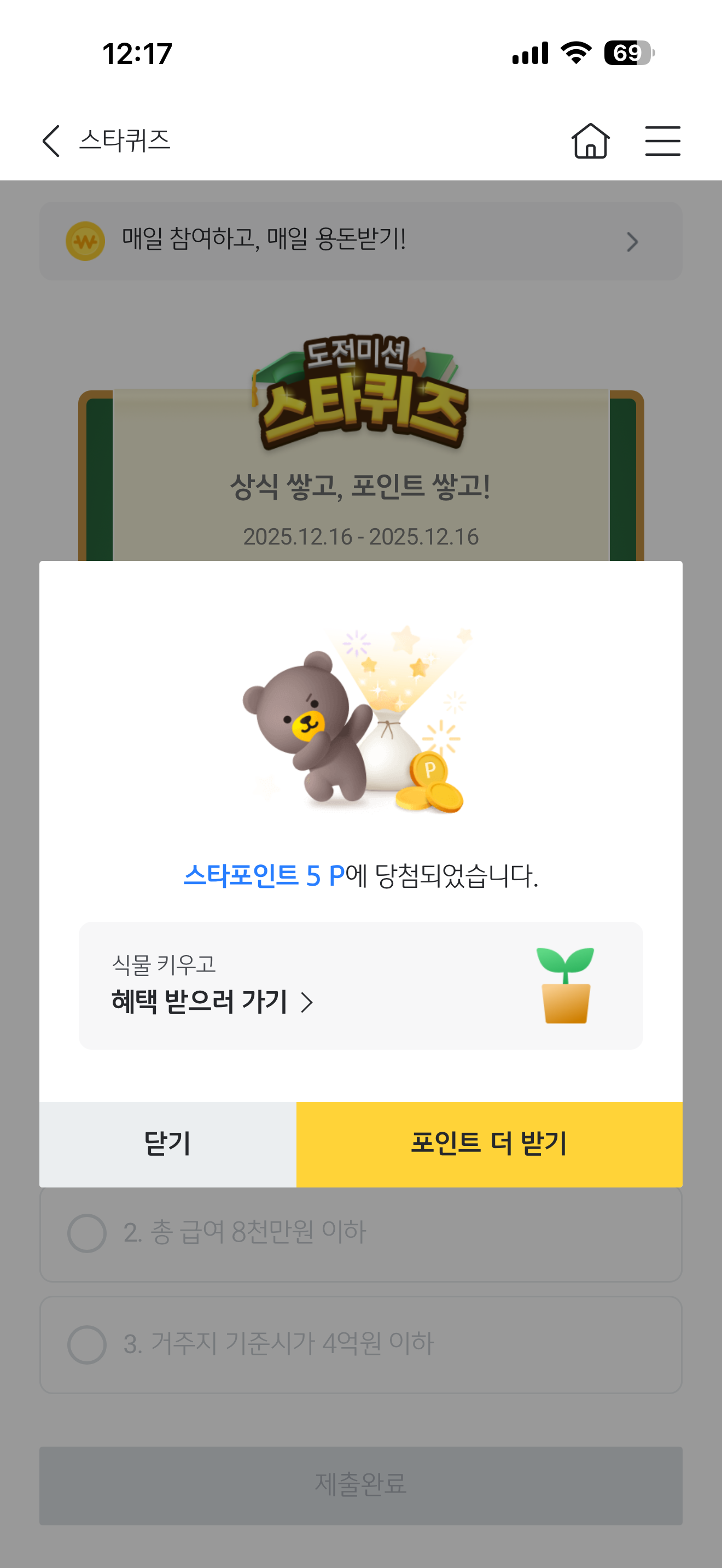 KB스타뱅킹 스타퀴즈 12월 16일 문제입니다