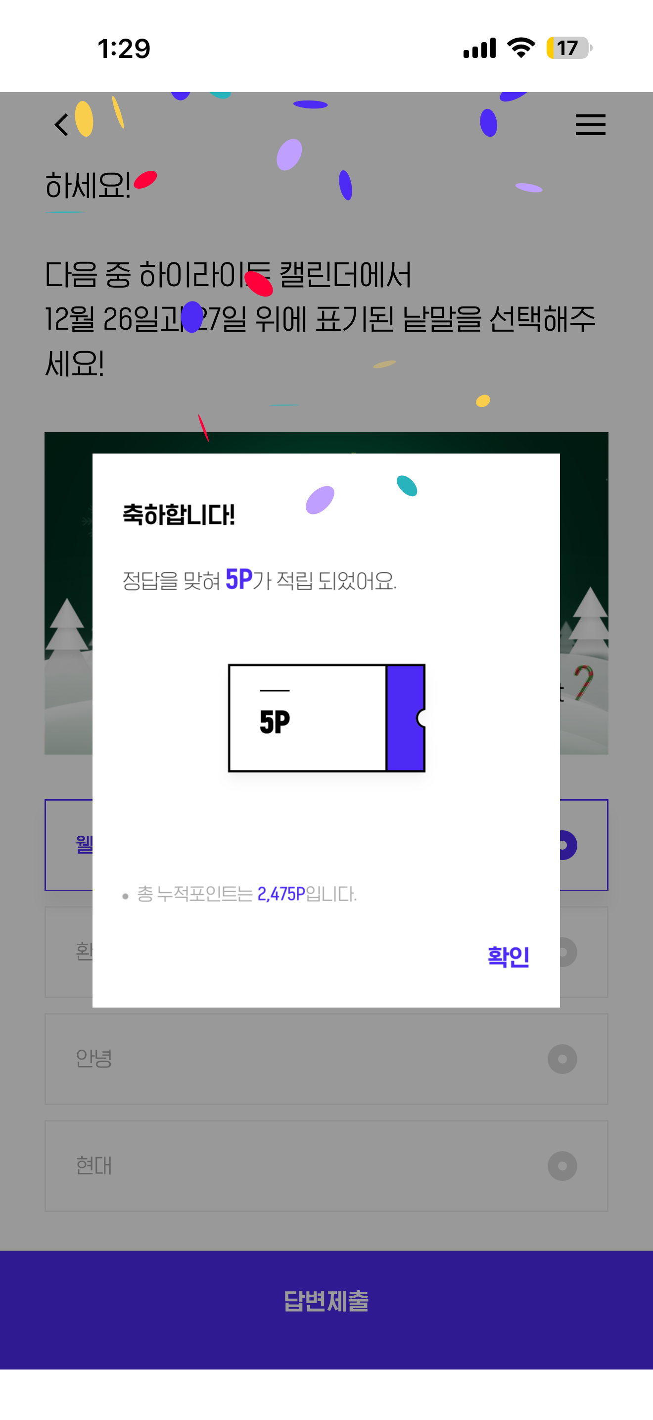 H포인트 퀴즈 12월 17일 문제입니다