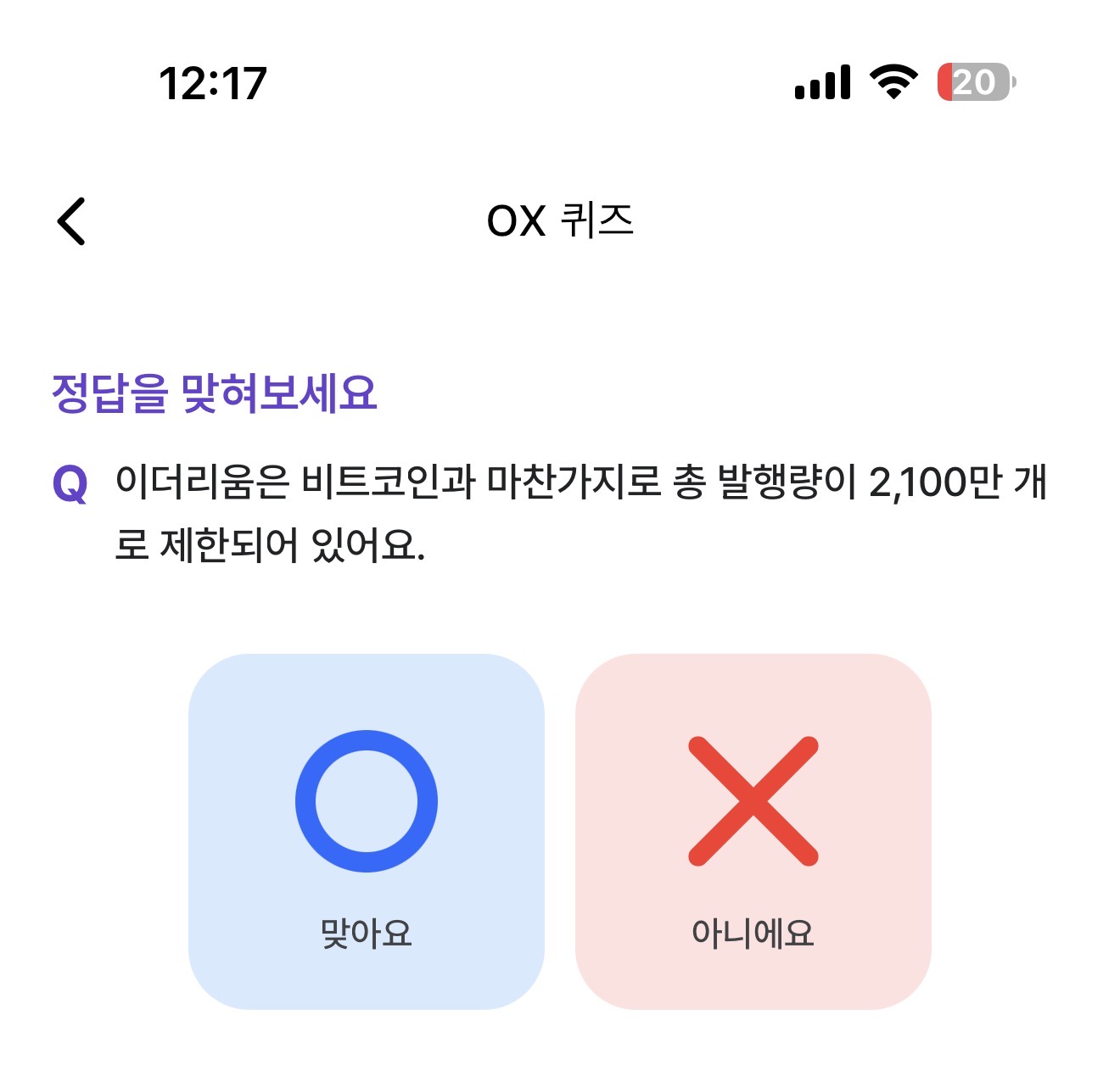 이더리움은 비트코인과 마찬가지로 총 발행량이 2,100만 개로 제한되어 있어요 O, X 퀴즈인데요. 이더리움은 비트코인과 함께 대표적인 코인이죠. 과연 총 발행량이 2,100만 개로 제한되어 있을까요? 상식으로 알아두세요