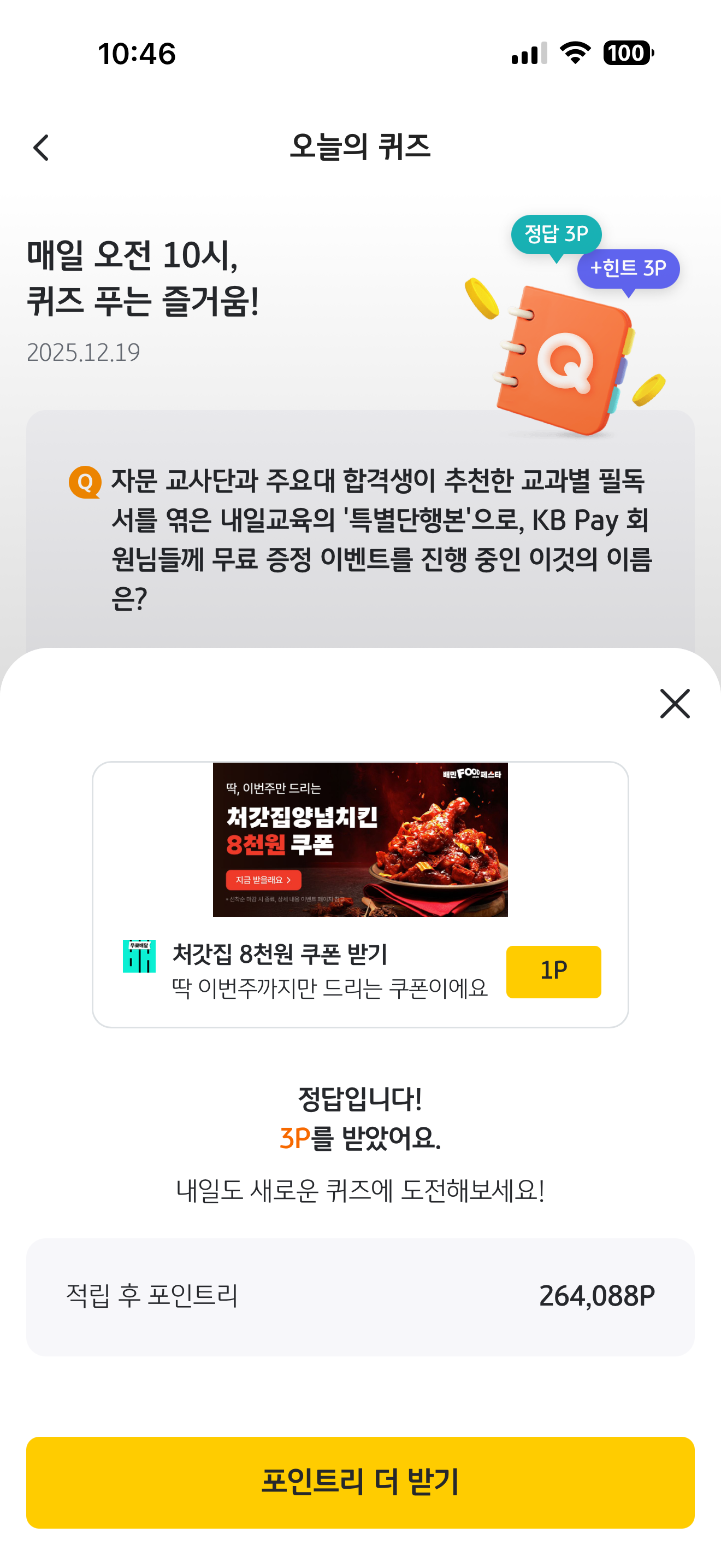 KB Pay 오늘의 퀴즈 정답은 교과연계적합서 입니다