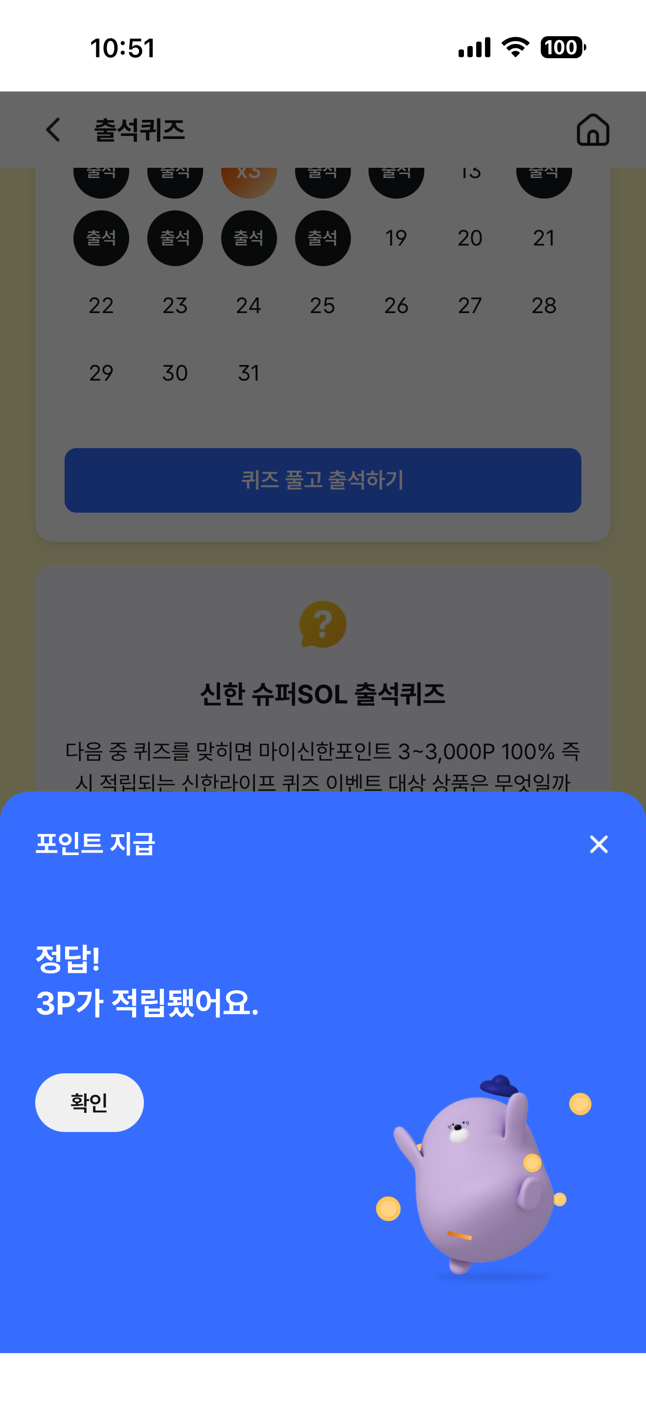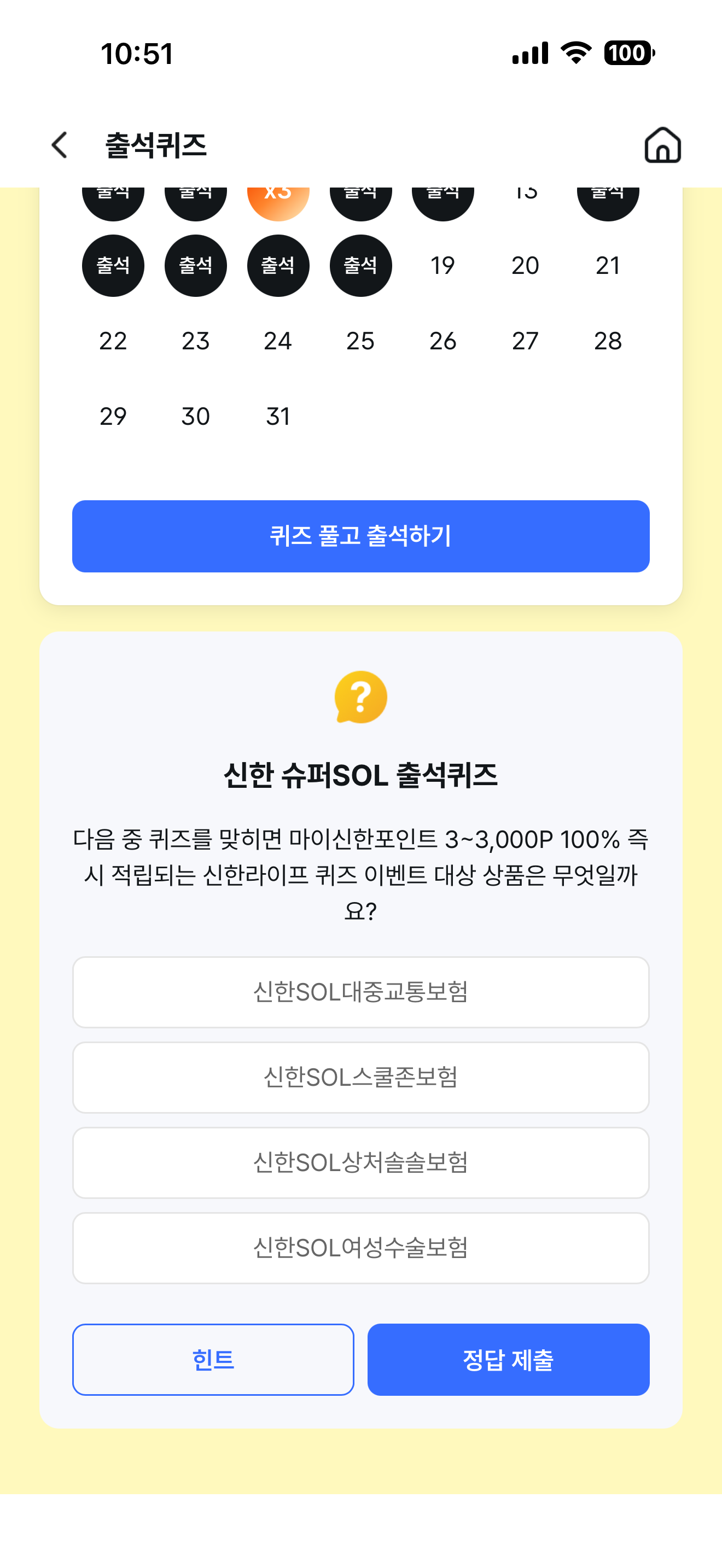 신한 슈퍼SOL 출석퀴즈 정답은 신한SOL대중교통보험 입니다