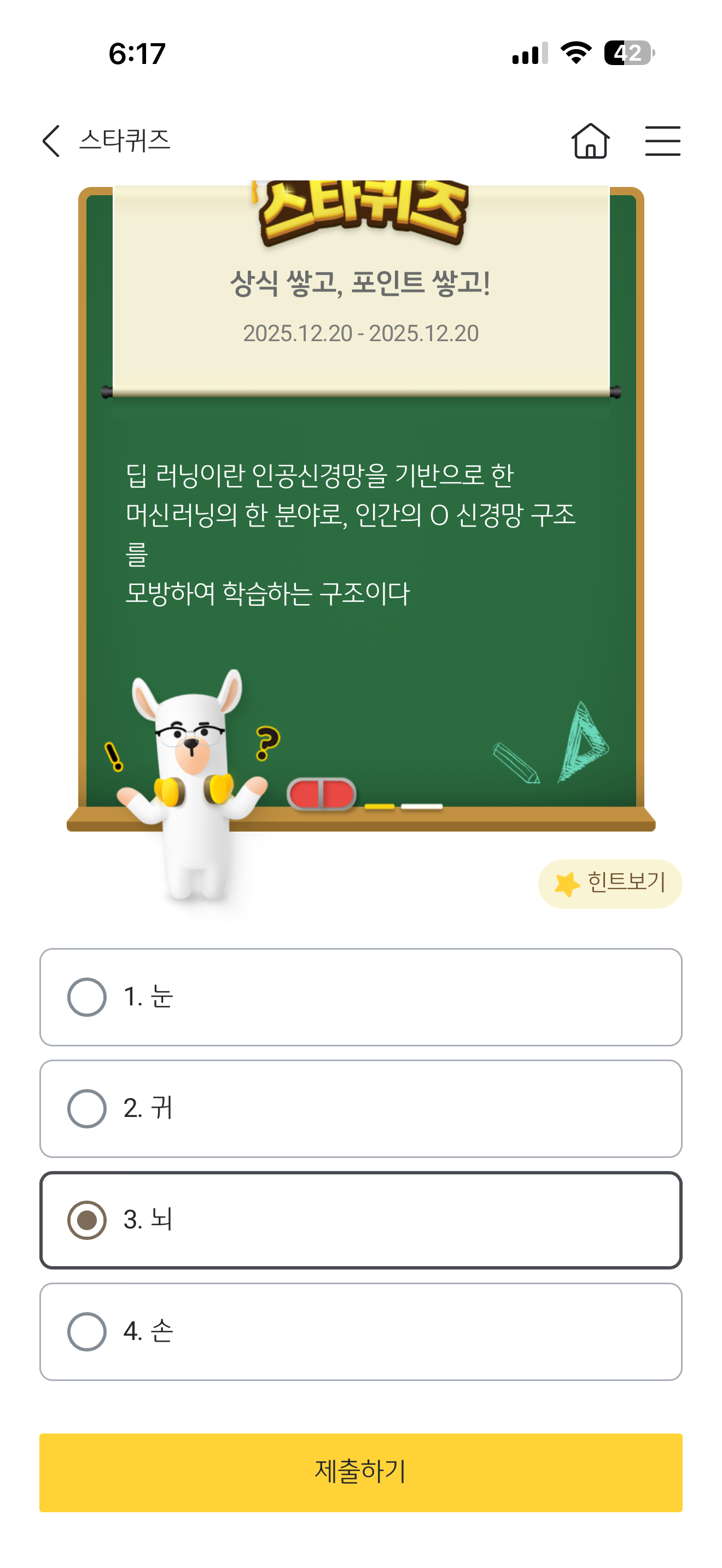 KB스타뱅킹 스타퀴즈 정답은 뇌 입니다