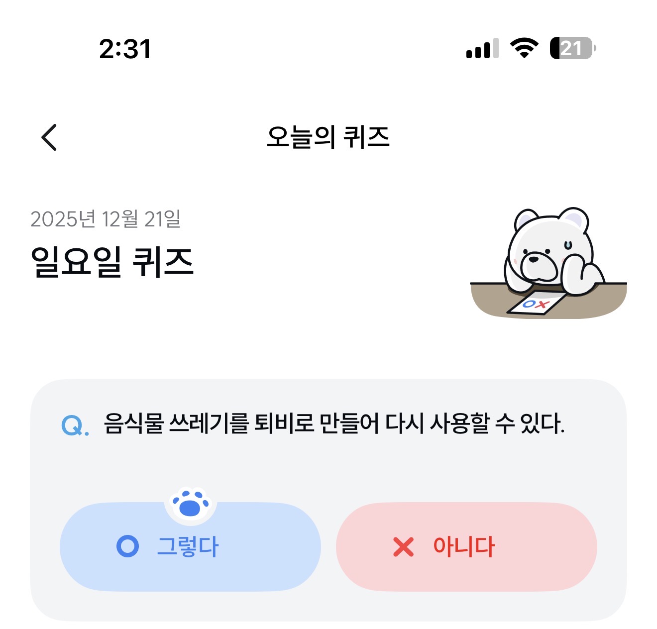 기후행동 기회소득 오늘의 퀴즈 정답은 그렇다 입니다