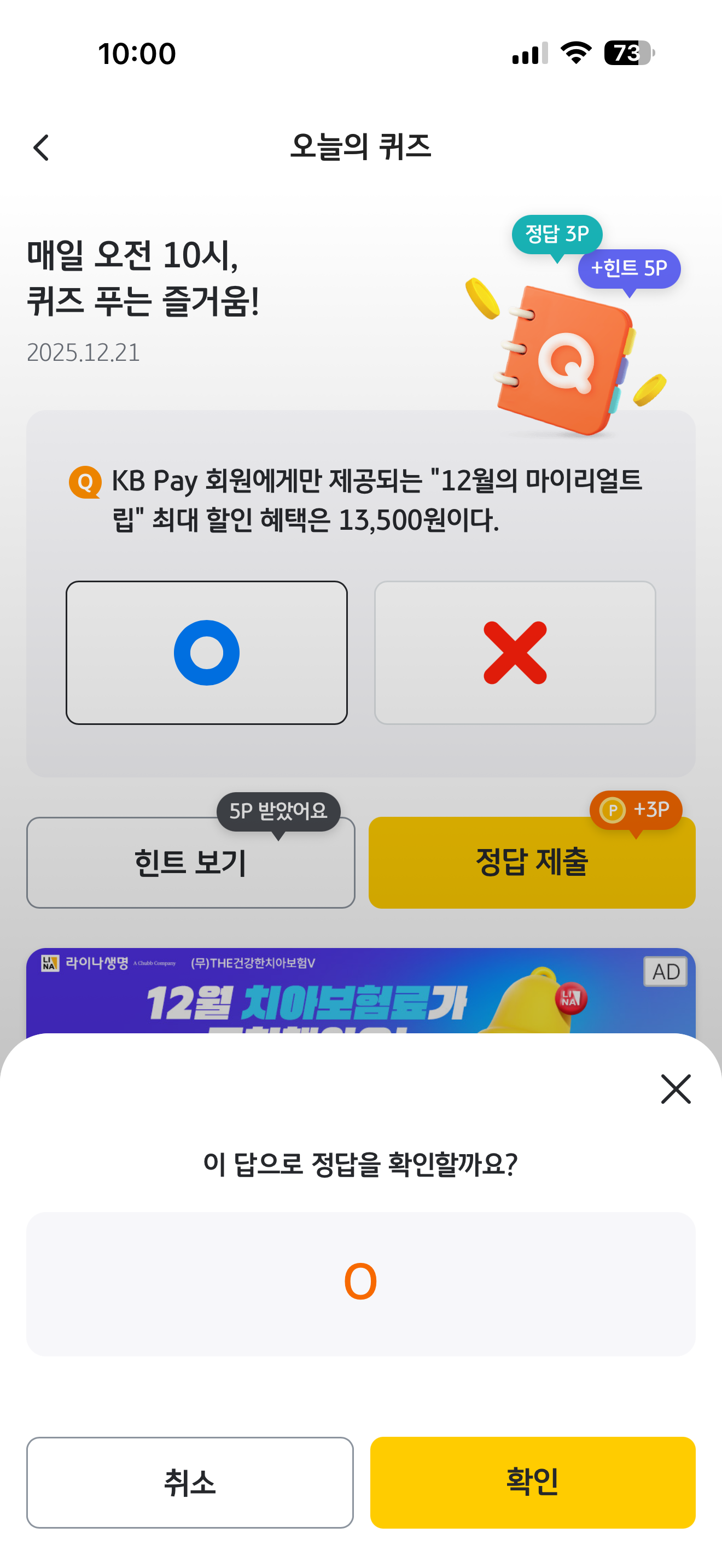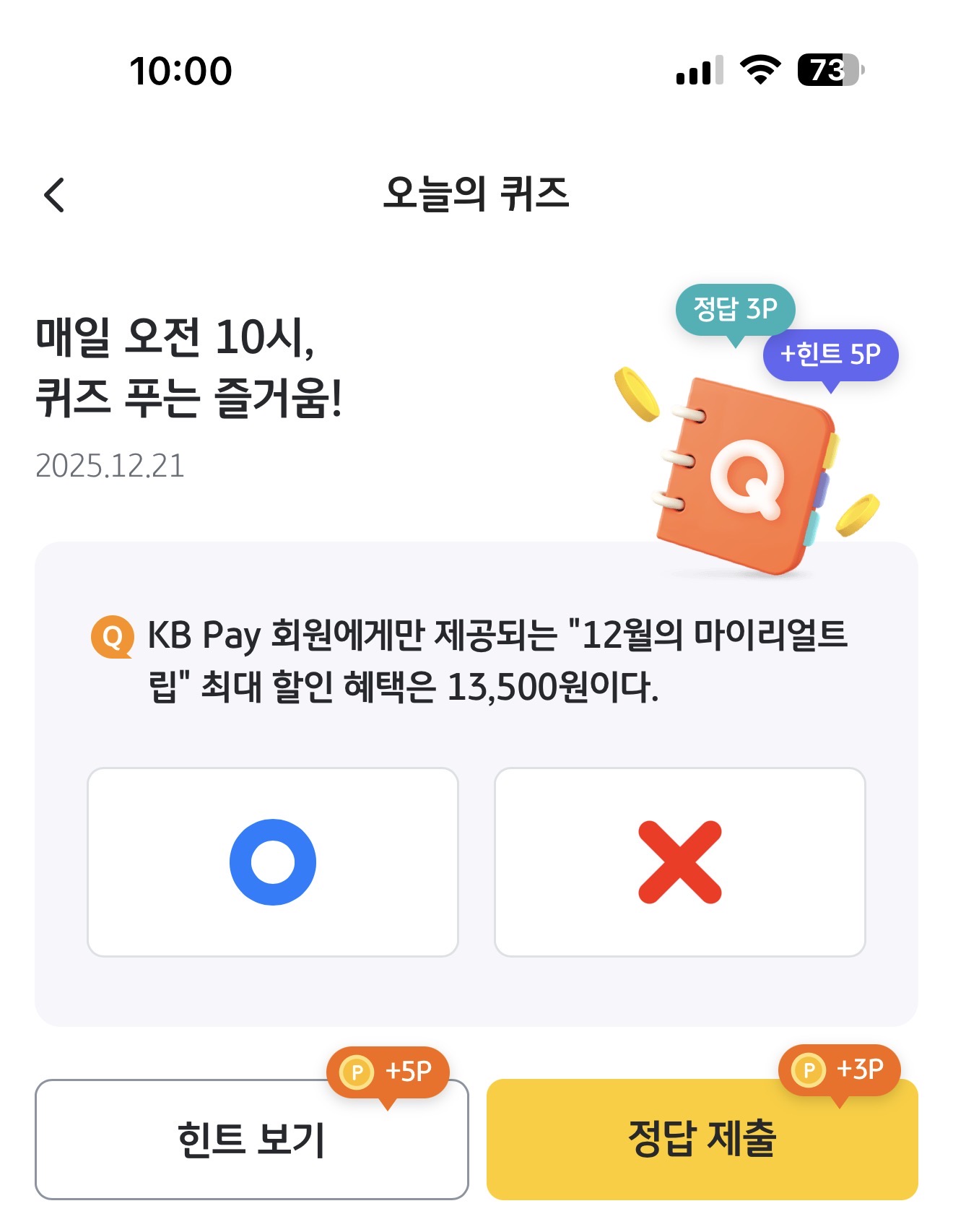 KB Pay 오늘의 퀴즈 정답은 O 입니다