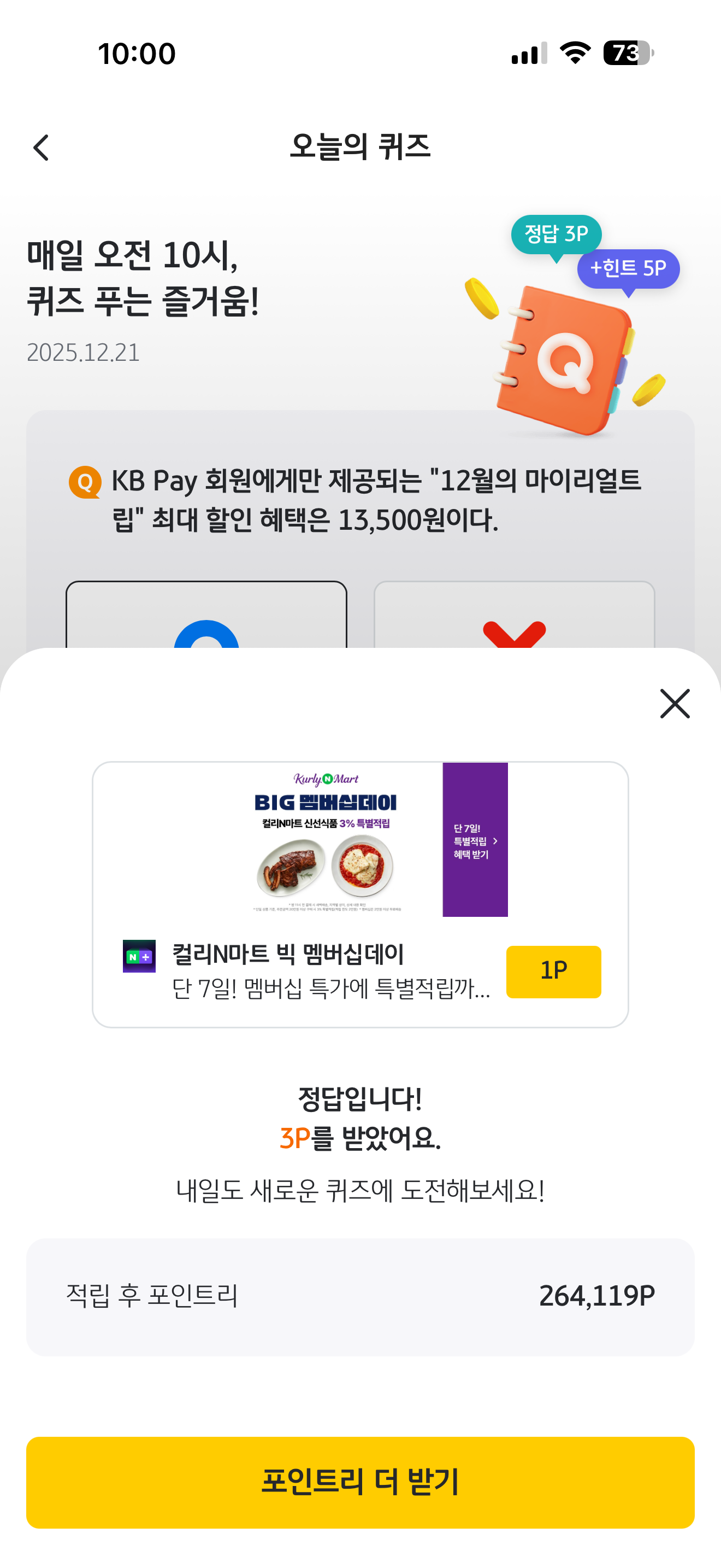 KB Pay 오늘의 퀴즈 12월 21일 문제입니다