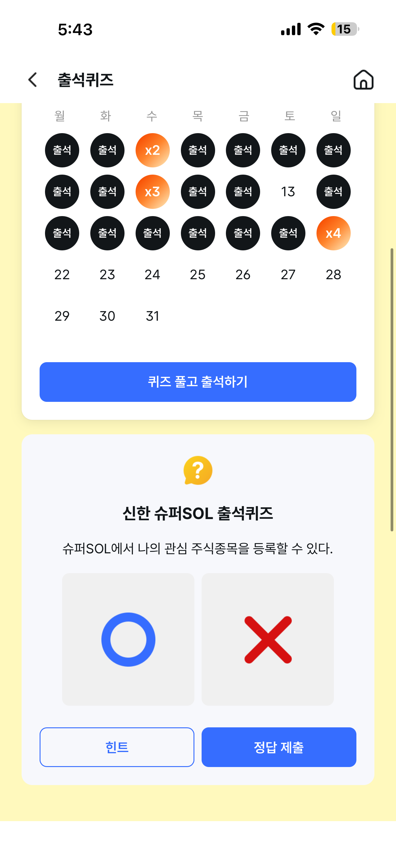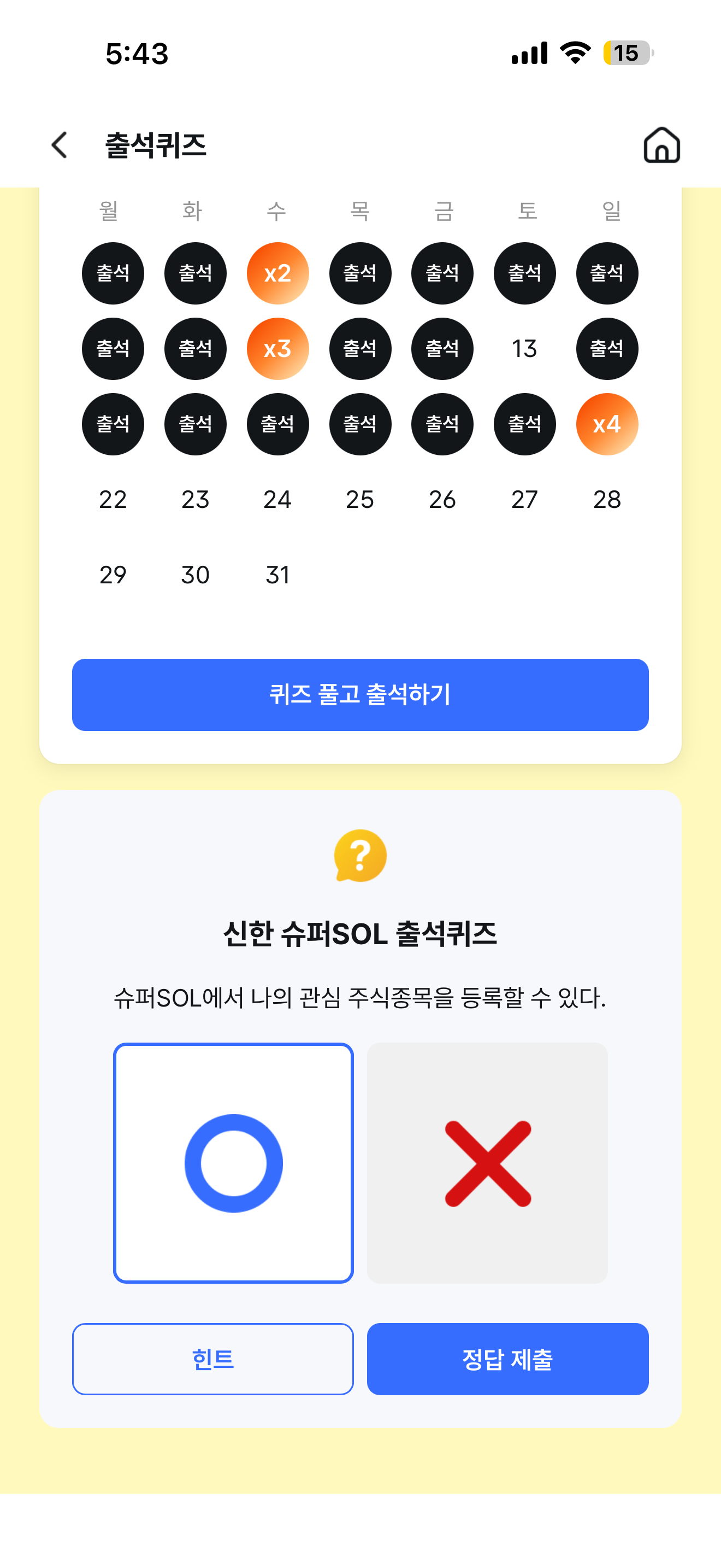 신한 슈퍼SOL 출석퀴즈 정답은 O 입니다