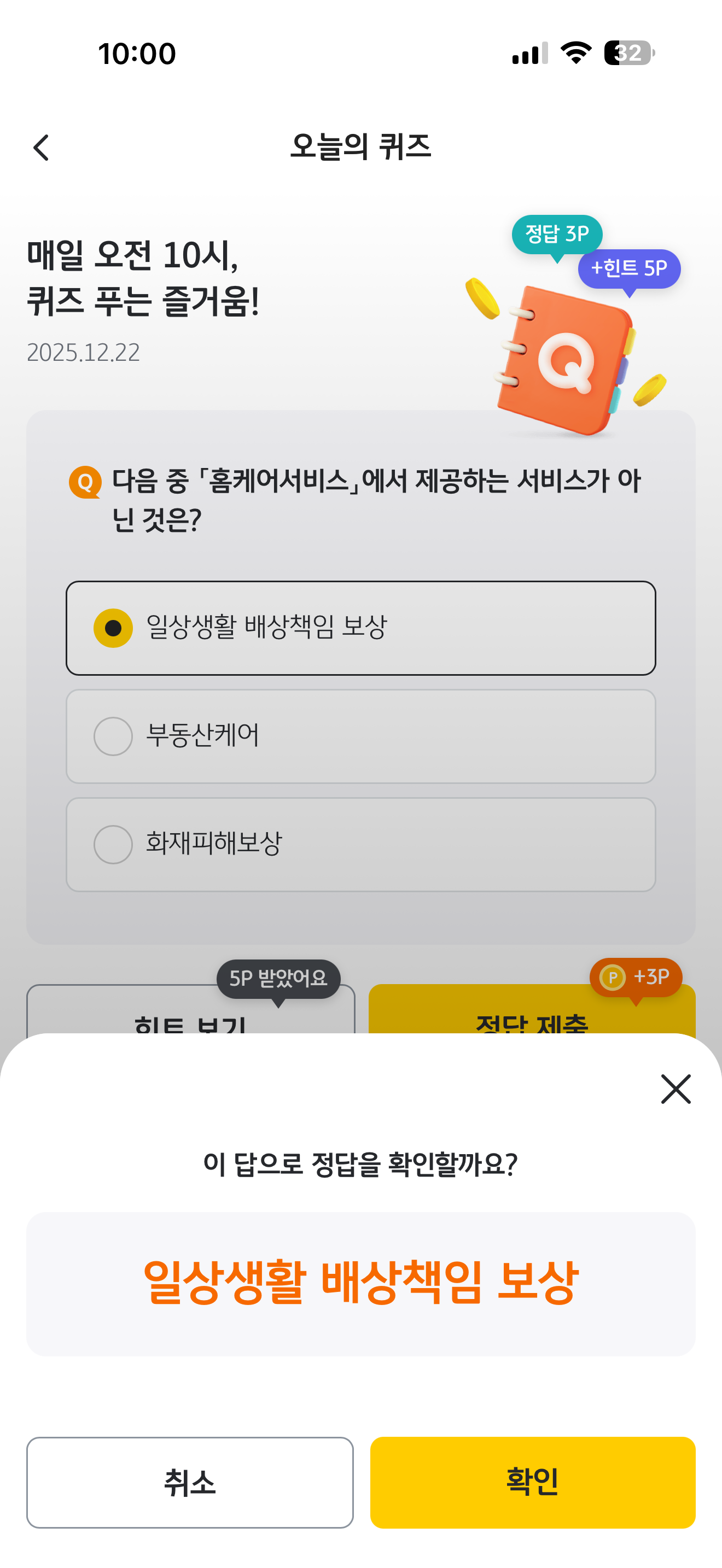 KB Pay 오늘의 퀴즈 정답은 일상생활 배상책임 보상 입니다