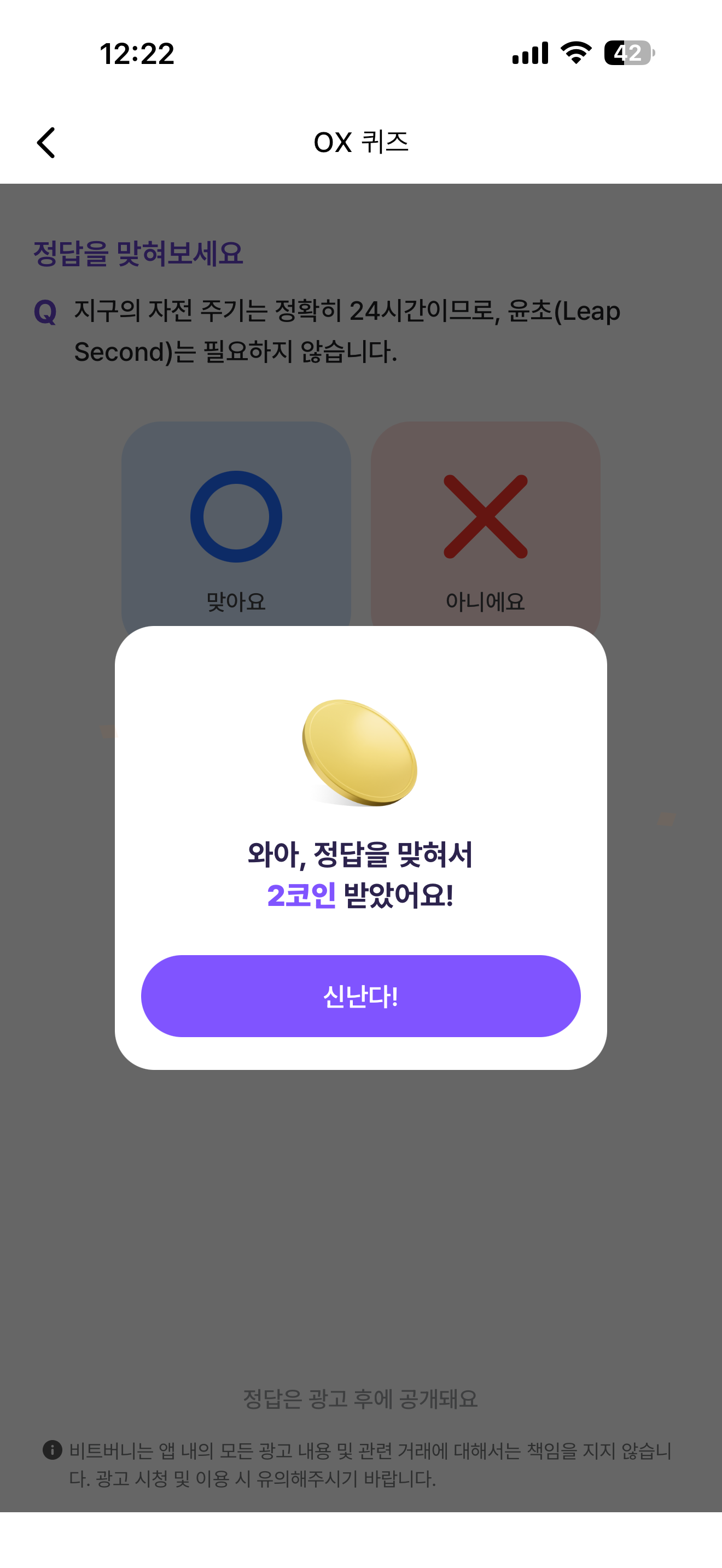 비트버니 오늘의 퀴즈 OX 퀴즈 정답은 X 입니다