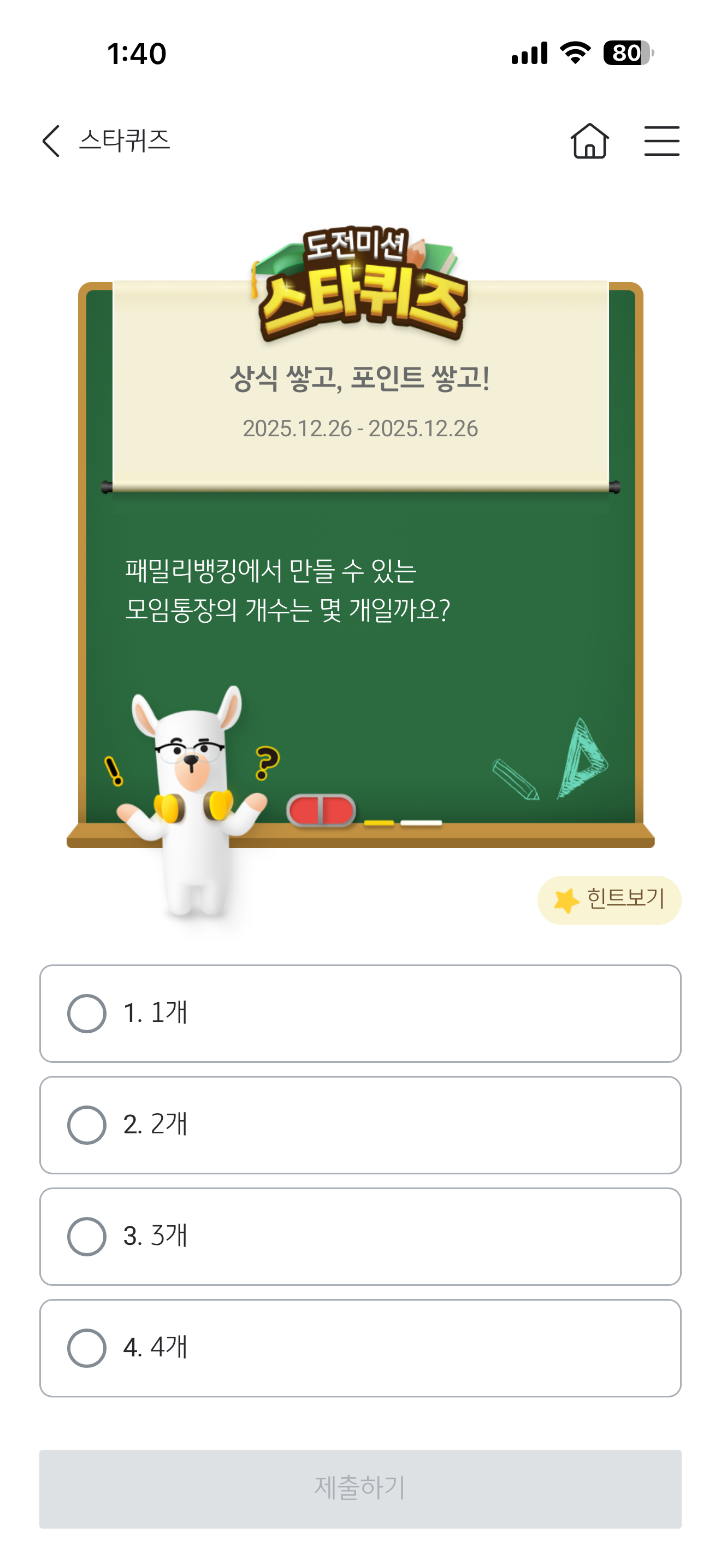 KB스타뱅킹 스타퀴즈 정답은 3개 입니다