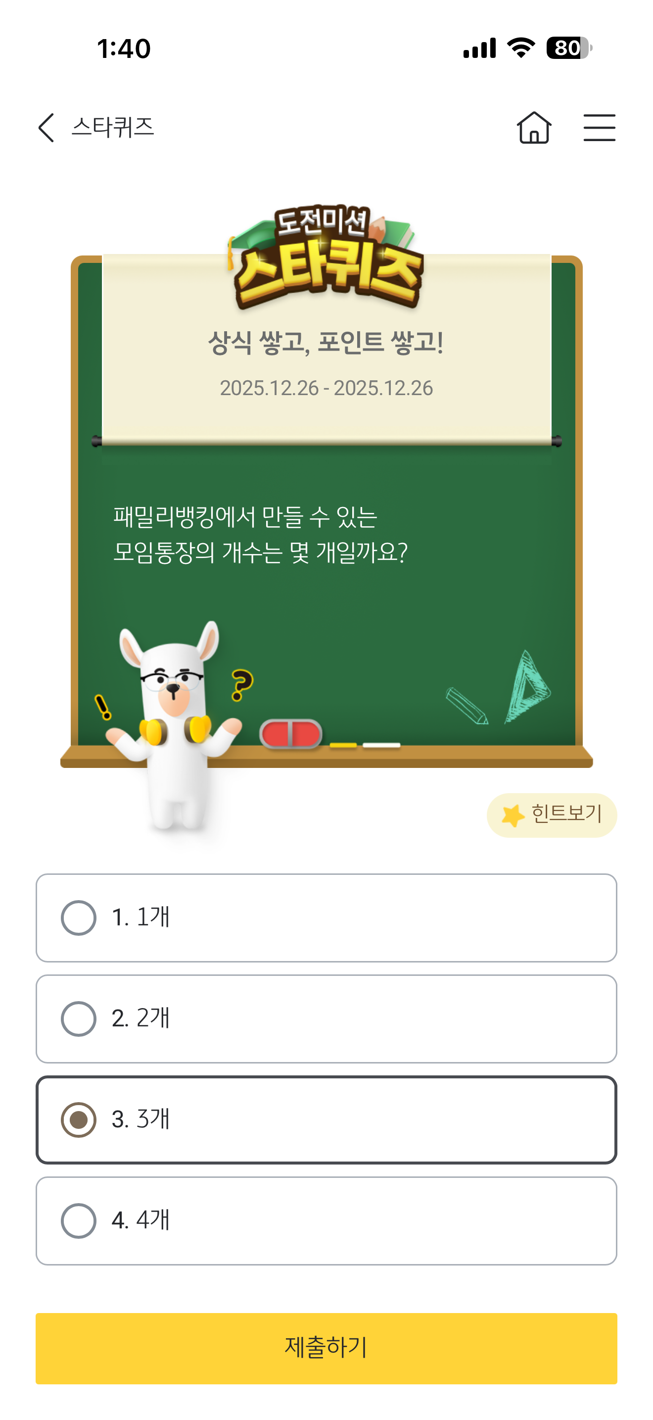 KB스타뱅킹 스타퀴즈 정답은 3개 입니다